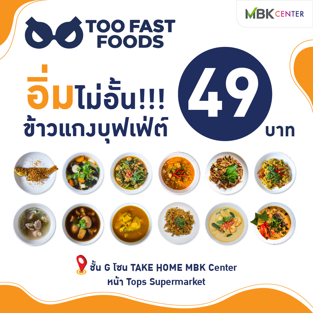 มิติหุ้น – อิ่มจุกจุกกับร้านเด็ดโดนใจ ศูนย์การค้า เอ็ม บี เค เซ็นเตอร์ แนะนำโปรโมชันแคมเปญสุดคุ้ม อิ่มไม่อั้น!!! ข้าวแกงบุฟเฟ่ต์ ในราคาเพียง 49 บาท จาก TOO FAST FOODS ชั้น G โซน TAKE HOME ยกขบวนเมนูอาหารหมุนเวียนให้ได้