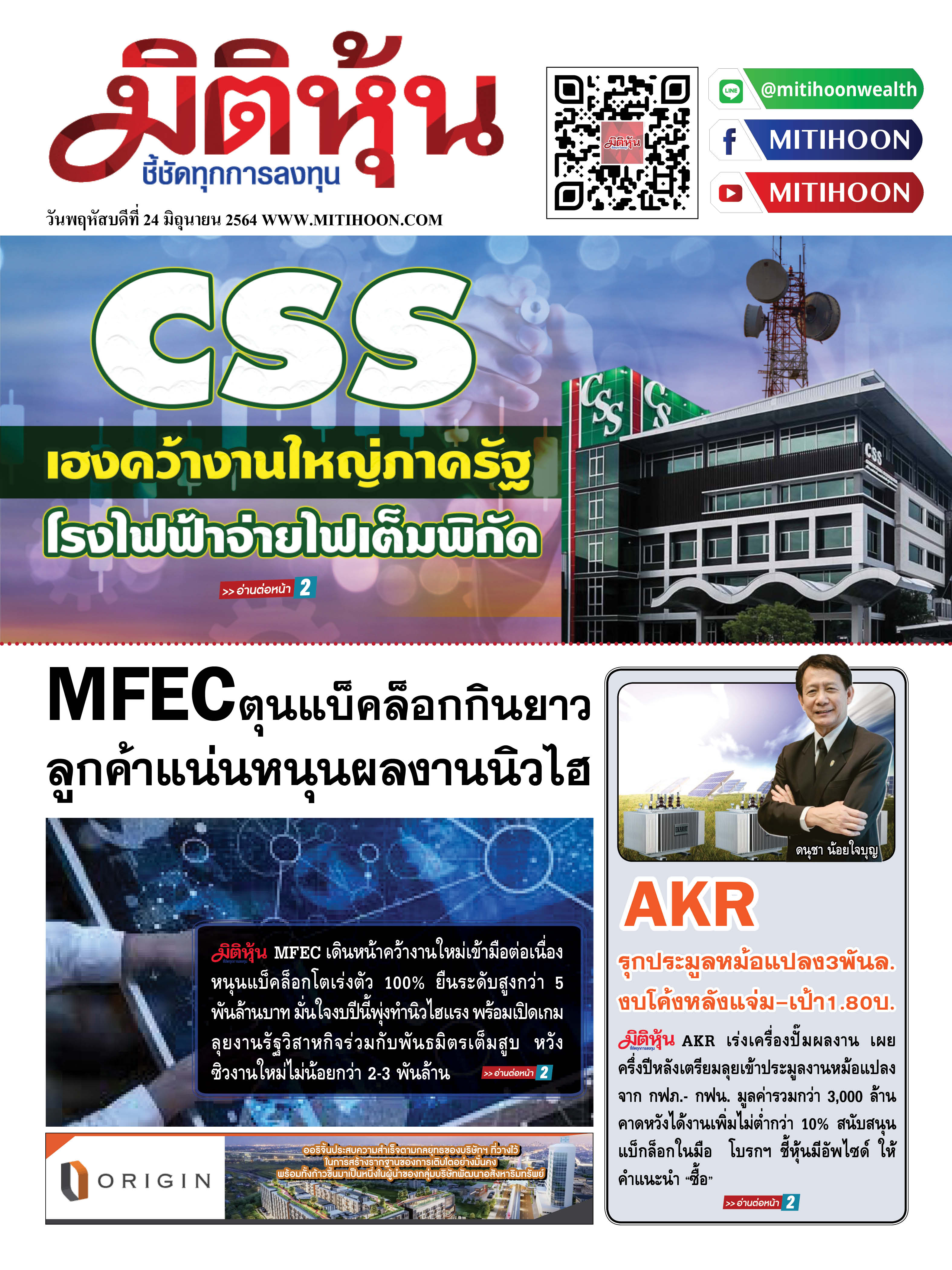 นสพ.มิติหุ้น “ชี้ชัดทุกการลงทุน” ฉบับวันที่ 24 มิถุนายน 2564