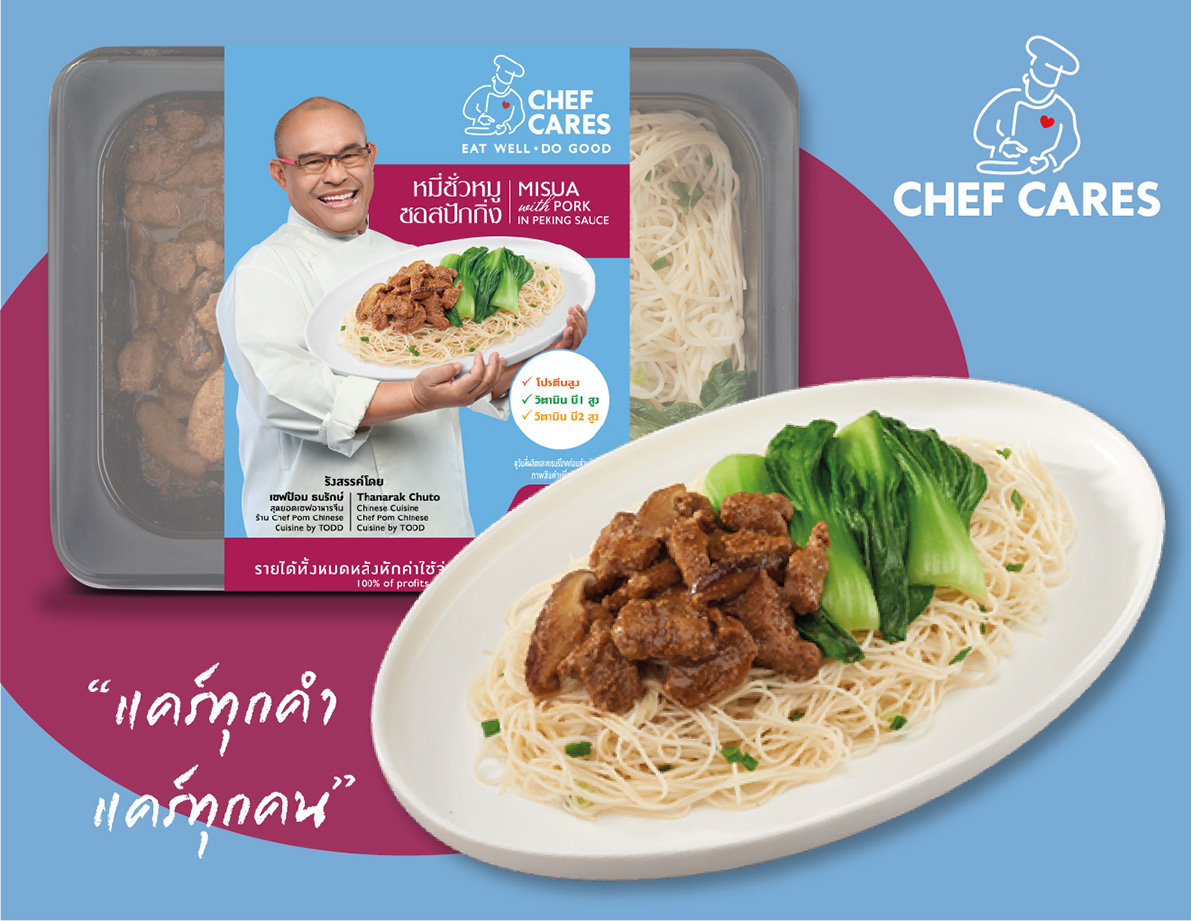 บริษัท เชฟแคร์ส โปรเจกต์ จำกัด ผู้ผลิตอาหารสำเร็จรูปพร้อมรับประทานเพื่อสุขภาพ “เชฟแคร์ส เรดดี้มีล” ขอขอบคุณ เชฟป้อม ธนรักษ์ ชูโต จากร้าน Chef Pom Chinese Cuisine By TODD ที่ได้ให้เกียรติ เข้ามามีส่วนร่วมในถ่ายทอดความห่วงใย ผ่านความอร่อยเมนูอาหารจีนกวางตุ้งแท้ๆ “หมี่ซั่วหมู ซอสปักกิ่ง” เชฟป้อม เป็นเชฟปรมาจารย์อาหารจีน มีความรู้ ความสามารถไม่เป็นสองรองใคร เริ่มศึกษาและเรียนรู้ศิลปะอาหารจีนตั้งแต่วัยเด็ก เก็บเกี่ยวประสบการณ์การทำงานในสายร้านอาหารจีนหลากหลายสไตล์ จนได้กลายมาเป็น Executive Chef ในโรงแรมระดับโลก ในปัจจุบันเชฟป้อมได้เปิดร้านอาหารจีน Chef Pom Chinese Cuisine By TODD เป็นของตัวเอง สร้างสรรค์อาหารจีนประยุกต์ ผนวกนวัตกรรมการครัว กับไอเดียเฉพาะตัว มีคาแรคเตอร์ที่โดดเด่น ผ่านเมนูร่วมสมัยหลากหลายเมนู จนสร้างชื่อให้เป็นที่ประจักษ์จากรายการแข่งขันทำอาหารชื่อดังระดับชาติ