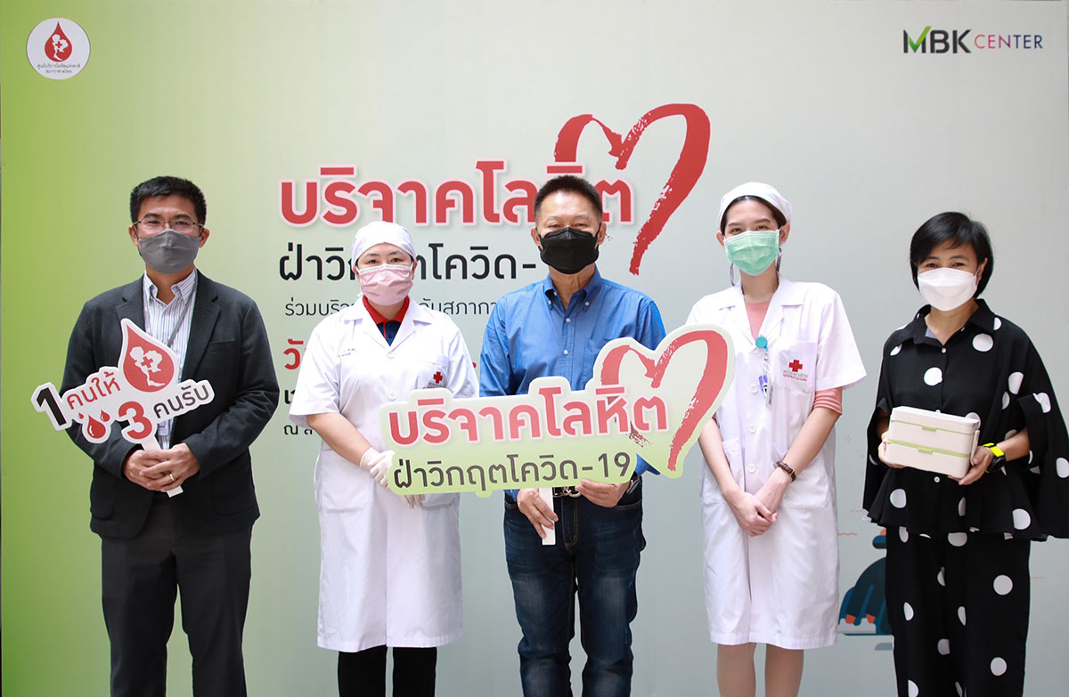 มิติหุ้น – ศูนย์การค้าเอ็ม บี เค เซ็นเตอร์ ร่วมกับ ศูนย์บริการโลหิตแห่งชาติ สภากาชาดไทย จัดกิจกรรม บริจาคโลหิต ฝ่าวิกฤตโควิด-19 เพื่อช่วยให้มีปริมาณโลหิตสำรองที่เพียงพอต่อความต้องการสำหรับผู้ป่วยในโรงพยาบาลทั่วประเทศ และลดปัญหาการขาดแคลนโลหิตในสถานการณ์การแพร่ระบาดของโรค COVID-19 โดยมี นายสมพล ตรีภพนารถ (ที่ 3 จากซ้าย) กรรมการผู้จัดการธุรกิจศูนย์การค้า พร้อมด้วย นายวิศาล สิปิยารักษ์ (ที่ 1 จากซ้าย) รองกรรมการผู้อำนวยการสายบริหารพื้นที่เช่าและผู้เช่าสัมพันธ์ และ รองกรรมการผู้อำนวยการสายการตลาด นางสาวศตกมล วรกุล (ที่ 5 จากซ้าย) ผู้อำนวยการฝ่ายสื่อสารองค์กร บริษัท เอ็ม บี เค จำกัด (มหาชน) กลุ่มพนักงานจิตอาสา MBK Spirit ผู้ประกอบการร้านค้า และ ประชาชนทั่วไป เข้าร่วมกิจกรรม ณ ลานพญาไท ฮอลล์ ชั้น G เมื่อเร็ว ๆ นี้