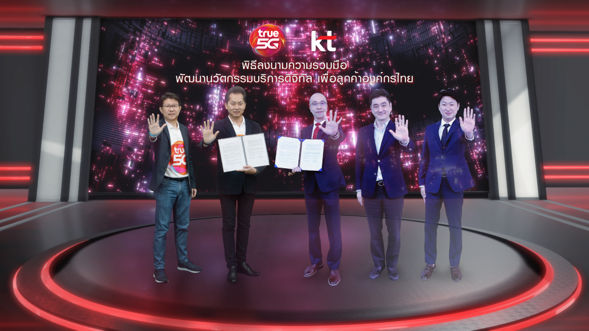 มิติหุ้น – ทรู 5G ผู้นำที่มีคลื่นความถี่ครบกว่า เร็วแรงยิ่งกว่า ครอบคลุมกว่า ทุกการใช้งาน นำโดยนายพิรุณ ไพรีพ่ายฤทธิ์ (ที่ 2 จากซ้าย) หัวหน้าคณะทำงานและกรรมการยุทธศาสตร์ 5G และนายวิฑูรย์ เจียมศิริกาญจน์ (ซ้ายสุด) รองผู้อำนวยการและคณะทำงาน 5G บมจ. ทรู คอร์ปอเรชั่น ลงนามบันทึกข้อตกลงความร่วมมือ ร่วมกับ KT คอร์ปอเรชั่น ผู้นำด้านบริการโทรคมนาคมของเกาหลีใต้ ซึ่งเป็นผู้ให้บริการ 5G รายแรกของโลก โดย มร.มุน ซอง อุค (กลาง) รองประธานอาวุโส และ Head of KT’s Global Business Department มร.คิมยุนโฮ (ที่ 2 จากขวา) รองประธาน Global Business Development and Sales และมร.โอจุนโฮ (ขวาสุด) Team Leader of Global DX Business Team เพื่อร่วมกันพัฒนานวัตกรรมบริการดิจิทัลรูปแบบใหม่สำหรับลูกค้าองค์กรในประเทศไทย ได้แก่ Enterprise LTE/5G, กล้องCCTV อัจฉริยะ (intelligent CCTV/GiGAeyes) และเครือข่ายการใช้พลังงานอัจฉริยะ (Smart Energy) เป็นต้น