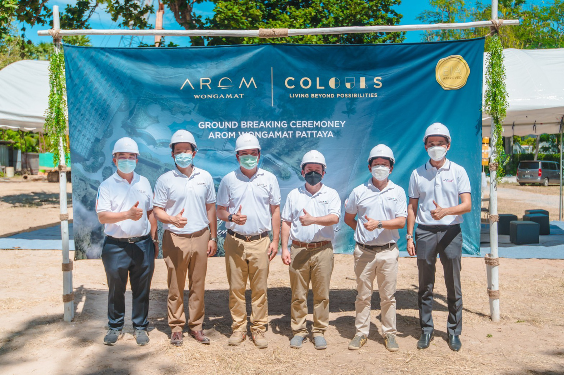 มิติหุ้น – คัลเลอร์ ดีเวลลอปเม้นท์ จัดพิธีลงเสาเข็มฤกษ์ “AROM WONGAMAT (อารมณ์ วงศ์อมาตย์)” คอนโดระดับซุปเปอร์ลักชัวรี่ ภายใต้แนวคิด “Sense The Masterpiece” นำโดย 3 ผู้บริหาร คุณเฉลิมพล โขนแจ่ม (ที่ 3 จากซ้าย) คุณสมภพ วาณิชเสนี (ที่ 2 จากซ้าย) และคุณภาค ธนาอัครช (ที่ 4 จากซ้าย) กรรมการผู้จัดการ บริษัท คัลเลอร์ ดีเวลลอปเม้นท์ จำกัด พร้อมด้วย บริษัทผู้รับเหมางานก่อสร้างและพันธมิตร ร่วมแสดงความยินดีในพิธีลงเสาเข็มฤกษ์เพื่อดำเนินการก่อสร้างคอนโดมิเนียมระดับซุปเปอร์ลักชัวรี่โครงการ “ อารมณ์ วงศ์อมาตย์” คอนโดฯ High Rise สูง 55 ชั้น มียูนิตเพียง 319 ยูนิต แลนด์มาร์คแห่งใหม่ในพัทยา สถาปัตย์ศิลป์ชิ้นเอก รูปแบบของ Private Island World Class Facilities Privacy & Tranquility คอนโดหรูวิวทะเล เมื่อเร็วๆ นี้ ณ พื้นที่โครงการ ริมชาดหาดวงศ์อมาตย์ พัทยา