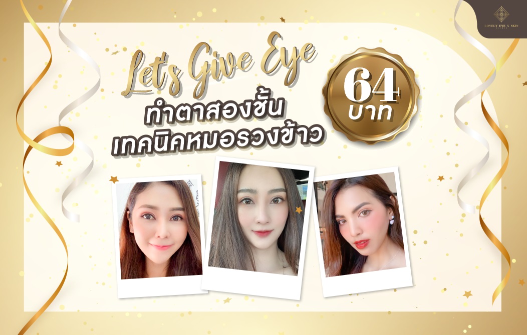 มิติหุ้น – หมอรวงข้าวแห่ง Lovely Eye & Skin Clinic จัดกิจกรรมสุดพิเศษ “Let’s Give Eye ทำตาสองชั้น 64 บาท” ชวนทุกคนฉลองยอดติดตามเฟสบุ๊คเพจกว่า 640,000 คน พร้อมมอบของขวัญแทนคำขอบคุณให้กับแฟนเพจ ทำตาสองชั้นเพียง 64 บาท จำนวน 3 รางวัล รวมมูลค่ารางวัล 360,000 บาท (รางวัลละ 120,000 บาท/ 1 ท่าน) เข้าร่วมกิจกรรมได้ที่เฟสบุ๊คเพจ: Lovely Eye & Skin Clinic กับ 2 ขั้นตอนง่ายๆ 1. กด Like & Share กิจกรรมนี้ในเพจพร้อมแท็กเพื่อน และติดแฮชแท็กตามที่เพจกำหนด 2. ถ่ายรูปหรือวิดีโอตนเอง ลงใต้โพสต์กิจกรรมพร้อมบอกเหตุผลว่าทำไมอยากมีตาสองชั้น