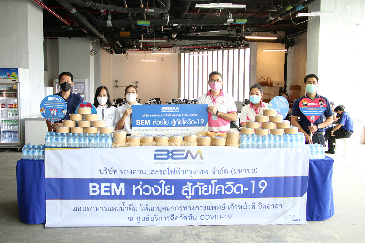 มิติหุ้น – บริษัท ทางด่วนและรถไฟฟ้ากรุงเทพ จำกัด (มหาชน) (BEM) ผู้ให้บริการทางด่วนและรถไฟฟ้า MRT นำโดยคุณอัลวิน จี รองกรรมการผู้จัดการ เป็นผู้แทนส่งมอบอาหารและน้ำดื่ม ให้แก่ บุคลากรทางการแพทย์เจ้าหน้าที่ และจิตอาสา ที่ปฏิบัติงาน ณ ศูนย์บริการฉีดวัคซีน ในเขตพื้นที่รายรอบเส้นทางรถไฟฟ้า MRT จำนวน 17 ศูนย์ อาทิเช่น ศูนย์บริการวัคซีนสถานีกลางบางซื่อ ศูนย์บริการวัคซีน อาคารกีฬาเวสน์ 1 สนามกีฬาไทย-ญี่ปุ่นดินแดง ศูนย์บริการวัคซีนจามจุรีสแควร์ ศูนย์บริการวัคซีนโรงแรมเบอร์เคลีย์ ประตูน้ำ ศูนย์ฉีดวัคซีนโควิด-19 อาคารสิงห์คอมเพล็กซ์ รวมตลอดโครงการจำนวนกว่า 4,000 ชุด เพื่อเป็นกำลังใจ พร้อมส่งความห่วงใยไปยังแพทย์ พยาบาล ตลอดจนเจ้าหน้าที่ และจิตอาสาทุกท่านที่ทุ่มเทปฏิบัติหน้าที่เป็นด่านหน้ารับมือสถานการณ์วิกฤตโควิด-19