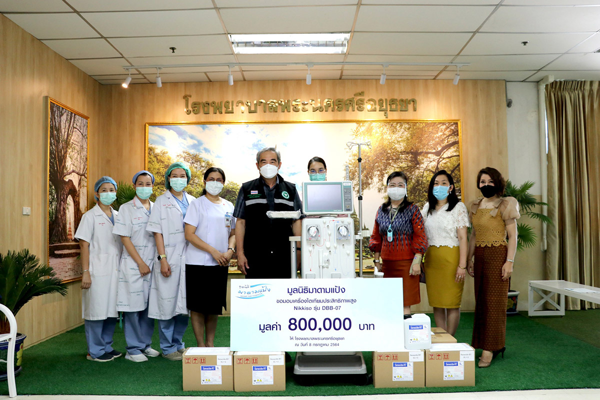 มิติหุ้น – จากสถานการณ์การแพร่ระบาดของไวรัสโควิด-19 ที่ขณะนี้ตัวเลข New High ทั้งผู้ติดเชื้อและผู้เสียชีวิต จนเข้าขั้นวิกฤต ส่วนหนึ่งจากการปัญหาการขาดแคลนเตียงรักษาและอุปกรณ์การแพทย์ช่วยชีวิต มูลนิธิมาดามแป้ง โดย “มาดามแป้ง” นวลพรรณ ล่ำซำ ซีอีโอ เมืองไทยประกันภัย และ ประธานกรรมการมูลนิธิฯ จึงสนับสนุนการให้บริการทางการแพทย์แก่โรงพยาบาลในต่างจังหวัดแบบต่อเนื่อง ด้วยการมอบอุปกรณ์ทางการแพทย์ โดยล่าสุด มอบเครื่องให้อากาศผสมออกซิเจนอัตราการไหลสูง (High Flow) มูลค่า 200,000 บาท แก่ โรงพยาบาลพระจอมเกล้า จ.เพชรบุรี โดยมี นพ.เกรียงศักดิ์ ค่ำอิ่ม ผู้อำนวยการโรงพยาบาลและคณะแพทย์ ร่วมรับมอบ