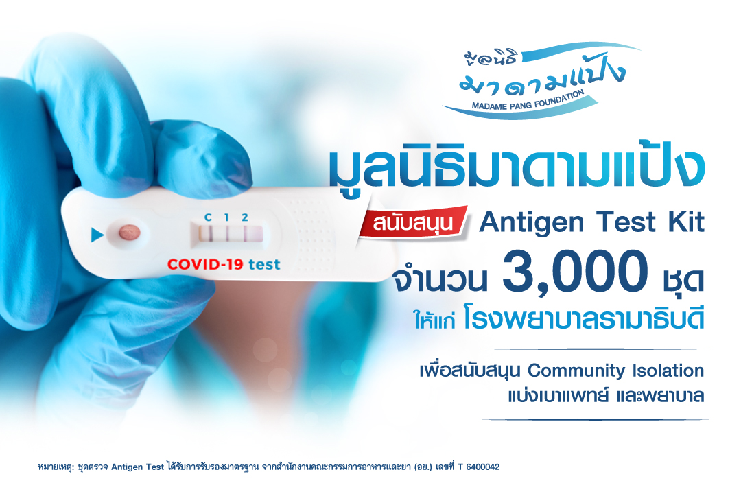 มิติหุ้น – “มูลนิธิมาดามแป้ง” โดย “มาดามแป้ง” นวลพรรณ ล่ำซำ ซีอีโอ บมจ.เมืองไทยประกันภัย ในฐานะประธานกรรมการมูลนิธิ ขอร่วมแบ่งเบาภาระงานของบุคลากรทางการแพทย์ในการคัดกรองประชาชน และลดอัตราการแพร่ระบาดของเชื้อไวรัสโควิด-19 ด้วยการมอบชุดตรวจ Antigen Test Kit จำนวน 3,000 ชุด มูลค่ากว่า 1,000,000 บาท ให้แก่โรงพยาบาลรามาธิบดี ส่งต่อไปยังประชาชนผู้ที่มีความเสี่ยงสูง อีกทั้งยังเป็นการสนับสนุนภารกิจ Community Isolation ของโรงพยาบาล
