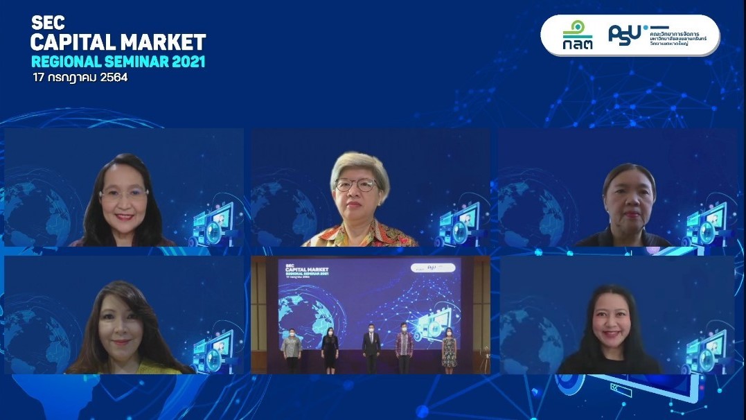 มิติหุ้น – สำนักงานคณะกรรมการกำกับหลักทรัพย์และตลาดหลักทรัพย์ (ก.ล.ต.) ร่วมมือกับมหาวิทยาลัยสงขลานครินทร์ (มอ.) จัดงานสัมมนาวิชาการในส่วนภูมิภาค “SEC Capital Market Regional Seminar 2021” ซึ่งจัดขึ้นเป็นปีแรก เพื่อสนับสนุนผลงานทางวิชาการและนำไปต่อยอดสู่การพัฒนาและกำกับดูแลตลาดทุน โดยเฉพาะตลาดทุนยุคดิจิทัลที่มีเทคโนโลยีเข้ามามีส่วนร่วมในภาคการเงินการลงทุนมากขึ้น