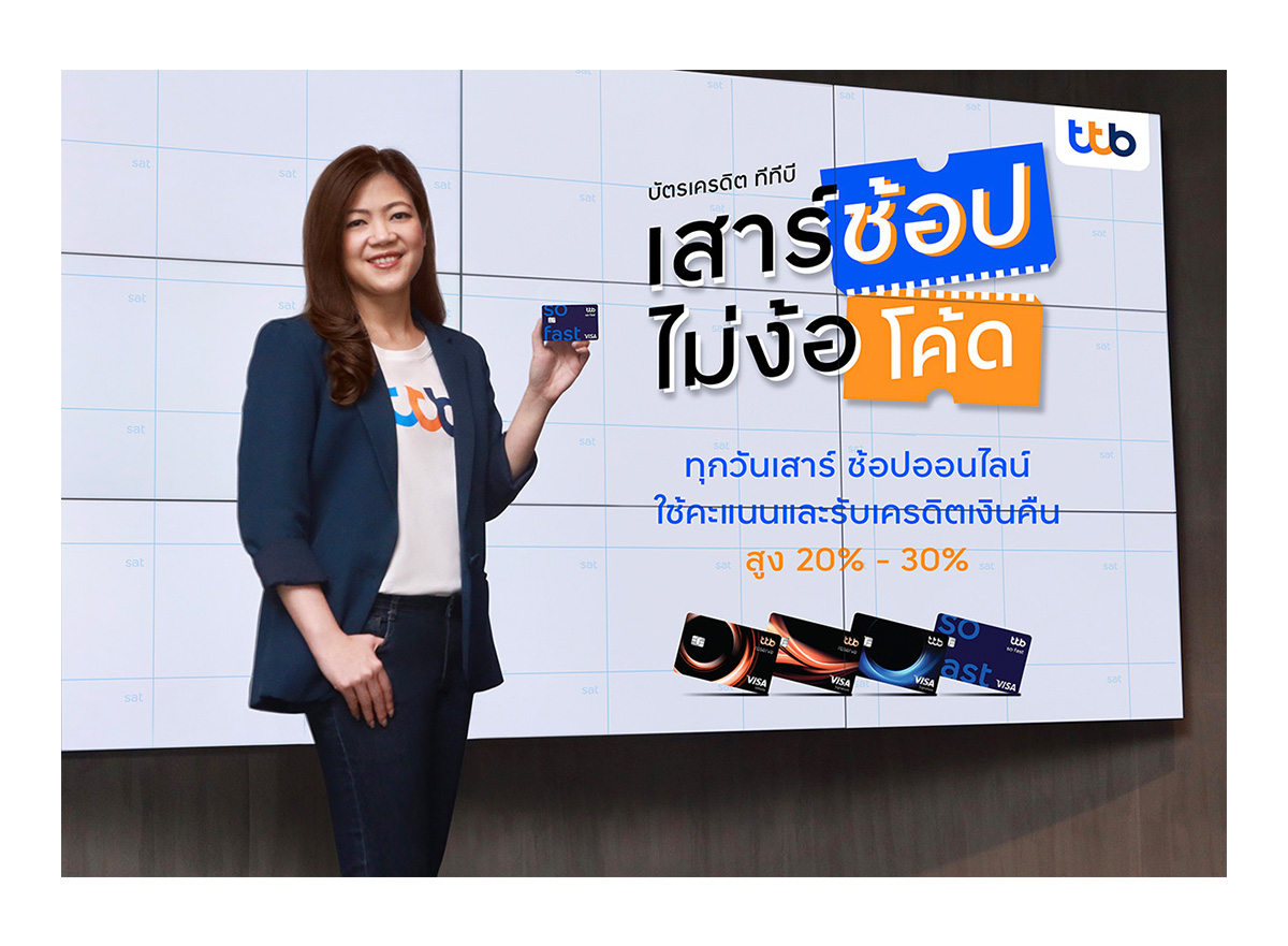 ล่าสุด บัตรเครดิตทีทีบีได้เปลี่ยนทุกการใช้จ่ายให้เป็นคะแนนสะสมที่คุ้มค่ามากกว่าเดิม พร้อมเปิดตัวแคมเปญ เสาร์ช้อปไม่ง้อโค้ด ตั้งแต่วันที่ 24 ก.ค. – 25 ก.ย. 2564 โดยเมื่อใช้จ่ายออนไลน์ด้วยบัตรเครดิตทีทีบี ช้อปคุ้มได้ทุกร้าน ทุกวันเสาร์ ไม่ต้องรอโค้ด ใช้คะแนนแลกรับเครดิตเงินคืนสูง 20% – 30% (จำกัดการแลกคะแนนสะสม ไม่เกิน 2,000 คะแนนต่อบัญชีบัตรหลัก/วัน ยกเว้นหมวดการท่องเที่ยว จองที่พัก และสายการบิน) โดยบัตรเครดิตทีทีบี โซ ฟาสต์ (ttb so fast) และบัตรเครดิตทีทีบี แอปโซลูท (ttb absolute) ใช้คะแนนเท่ายอดซื้อ แลกรับเงินคืน 20% ด้านบัตรเครดิตทีทีบี รีเซิร์ฟ ซิกเนเจอร์ (ttb reserve signature) ใช้คะแนนเท่ายอดซื้อ แลกรับเงินคืน 25% และบัตรเครดิตทีทีบี รีเซิร์ฟ อินฟินิท (ttb reserve infinite) ใช้คะแนนเท่ายอดซื้อ แลกรับเงินคืน 30%