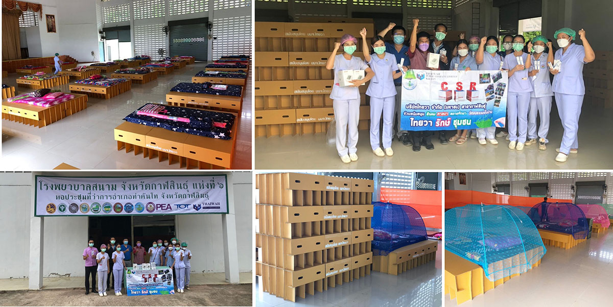 มิติหุ้น – บริษัท ไทยวา จำกัด (มหาชน) หรือ TWPC ร่วมเป็นส่วนหนึ่งในการส่งความห่วงใย ให้แก่โรงพยาบาลและบุคลากรทางการแพทย์ ในการปฏิบัติงานในสถานการณ์สู้โรคโควิด-19 ในโครงการ “ไทยวา ร่วมใจ สู้โควิด-19” ส่งมอบเตียงกระดาษ ให้กับโรงพยาบาลสนาม จังหวัดกาฬสินธุ์, จังหวัดกำแพงเพชร และจังหวัดตาก เพื่อช่วยยกระดับความปลอดภัย และอำนวยความสะดวกให้แก่บุคลากรทางการแพทย์และผู้ป่วยได้ทันต่อสถานการณ์ กิจกรรมดังกล่าวจัดขึ้นเมื่อเร็วๆ นี้