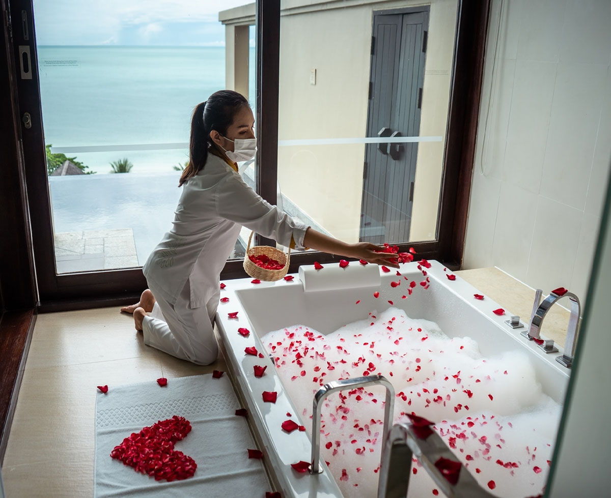 ผู้เข้าพักสามารถเลือกพักผ่อนในห้องจังเกิล พูลสวีท 1 ห้องนอน (Jungle One Bedroom Pool Suite) ในราคาเริ่มต้น 7,900++ บาทต่อคืน รวมอาหารเช้าสำหรับ 2 ท่าน และอื่น ๆ อีกมากมาย หรือหากต้องการยกระดับสิทธิพิเศษ สามารถเลือกแพ็กเกจราคา 8,585 บาทสุทธิต่อห้องต่อคืน ซึ่งรวมอาหารเช้าพร้อมบริการโพรเซ็กโก้ (Prosecco breakfast) สำหรับ 2 ท่าน, บริการรับ-ส่งระหว่าง รีสอร์ตฯ และสนามบินนานาชาติสมุย, สิทธิพิเศษอัปเกรดห้องพักประเภทถัดไป (ขึ้นอยู่กับจำนวนห้องพักที่ว่างในขณะนั้น)