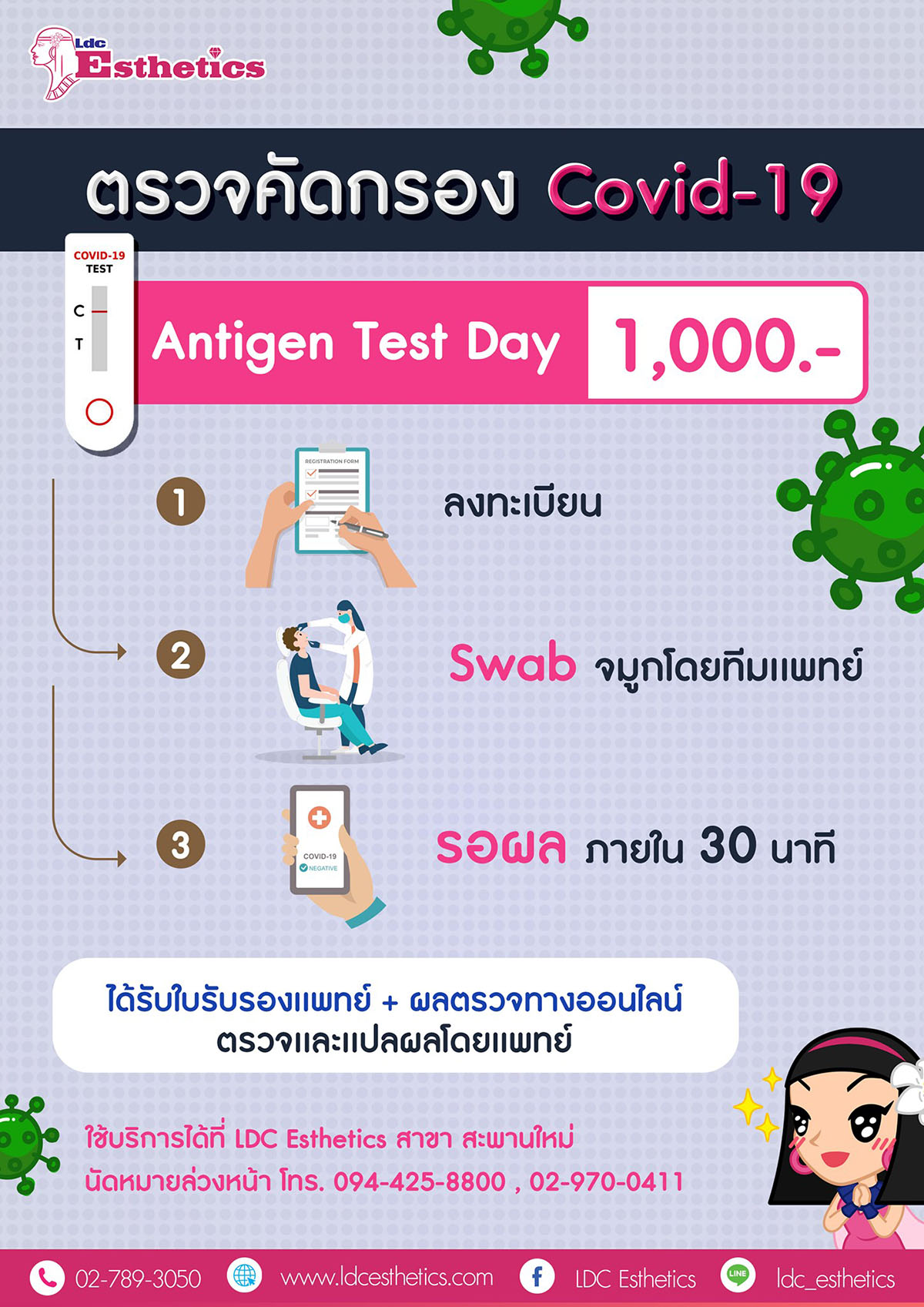 โดย วันที่ 28 กรกฎาคม 2564 นี้ LDC ประกาศเปิดจองคิวตรวจคัดกรอง Covid-19 (Antigen Test ) บุคคลทั่วไป 1,000 บาท ได้แก่