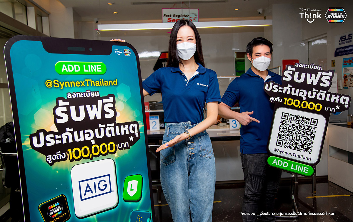 มิติหุ้น – ซินเน็คฯ รุกบริการออนไลน์ต่อเนื่อง เปิด LINE Official Account @SynnexThailand ให้ลูกค้าได้อุ่นใจในช่วง Work From Home รับสถานการณ์คุมเข้มโควิด พร้อมฉลองช่องทางใหม่กับสิทธิ์สุดพิเศษสำหรับลูกค้าคนสำคัญ เมื่อเพิ่มเพื่อนรับฟรี!!! ประกันอุบัติเหตุ AIG สูงสุด 100,000 บาท
