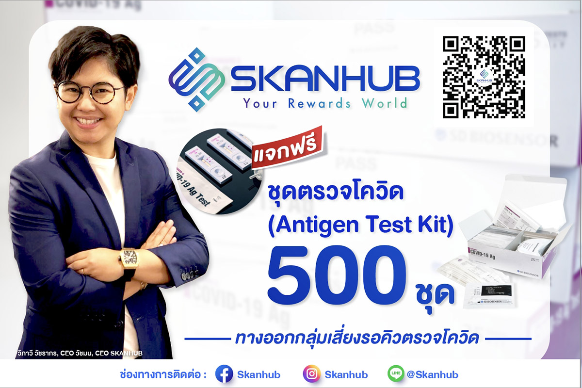 มิติหุ้น – Skanhub แอปพลิเคชันไลน์มิติใหม่แห่งการสะสมและลุ้นรับของรางวัล ได้เล็งเห็นถึงความรุนแรงของการระบาดของเชื้อ โควิด-19 ในช่วงนี้ จึงขอส่งต่อความห่วงใยถึงประชาชนที่กำลังจับมือผ่าวิกฤตในครั้งนี้ไปด้วยกัน ด้วยการแจกชุดตรวจโควิด (Antigen Test Kit) จำนวน 500 ชุด เพื่อเป็นอีกหนึ่งทางออกของกลุ่มเสี่ยงที่รอคิวตรวจโควิด เพียงลงทะเบียนผ่านไลน์ @skanhub หรือ https://lin.ee/2bxcPBt ตั้งแต่วันนี้ จนถึง 5 สิงหาคม 2564 แจ้งผลผู้ได้รับ ชุดตรวจโควิด (Antigen Test Kit) ในวันที่ 6 สิงหาคม 2564 พร้อมจัดส่งฟรีถึงปลายทางภายใน 3-7 วัน ติดตามข่าวสารและกิจกรรมที่น่าสนใจของ Skanhub ผ่านทาง Facebook Page: Skanhub หรือ https://www.facebook.com/skanhub/