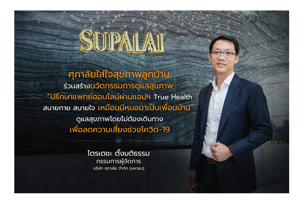 นายไตรเตชะ ตั้งมติธรรม กรรมการผู้จัดการ บริษัท ศุภาลัย จำกัด (มหาชน) เปิดเผยว่า บริษัทฯ มีความยินดีอย่างยิ่งที่ได้สร้างนวัตกรรมสำหรับที่อยู่อาศัยเพื่อมอบบริการให้ลูกบ้าน ร่วมกับพันธมิตรทางธุรกิจยักษ์ใหญ่ บริษัท ทรู ดิจิทัล กรุ๊ป จำกัด กับแพลตฟอร์มดูแลสุขภาพอัจฉริยะ ทรู เฮลท์ บริการให้คำปรึกษาโดยแพทย์ผู้เชี่ยวชาญ สร้างความสะดวกสบาย และตอบโจทย์กับไลฟ์สไตล์คนเมืองในปัจจุบัน ซึ่งทางศุภาลัยนอกจากให้ความใส่ใจเรื่องที่อยู่อาศัยแล้ว ยังเล็งเห็นความสำคัญเรื่องสุขภาพกาย และสุขภาพใจของลูกบ้านเป็นอย่างมาก ในสถานการณ์ปัจจุบันที่ระบบสาธารณสุขของบ้านเราอาจไม่เอื้ออำนวยความสะดวกให้ใช้บริการที่โรงพยาบาลได้ จึงจัดแคมเปญ “ปรึกษาแพทย์ออนไลน์ผ่านแอปฯ True Health สบายกาย สบายใจ เหมือนมีหมอมาเป็นเพื่อนบ้าน” เป็นอีกหนึ่งทางเลือกที่ช่วยตอบโจทย์ในสถานการณ์อันยากลำบากช่วงโควิด -19 ซึ่งเน้นสะดวกสบายใช้งานได้ง่ายๆ ผ่านสมาร์ทโฟนทั่วไป สำหรับคนที่อยากจะพูดคุยตรวจสุขภาพกับคุณหมอโดยไม่ต้องเดินทาง เพื่อลดความเสี่ยงของการติดเชื้อในช่วงนี้ ทางบริษัทฯ ประเดิมโครงการแรกที่ ศุภาลัย ริวา แกรนด์ คอนโดมิเนียมสร้างเสร็จพร้อมโอนฯ ริมแม่น้ำเจ้าพระยา ซึ่งบริษัทฯ มุ่งหวังให้การบริการที่เป็นเลิศในทุก Customer Touchpoints และสามารถต่อยอดไปสู่โครงการต่างๆ ของศุภาลัยต่อไป