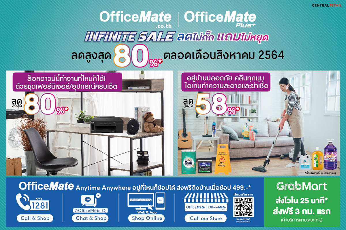 มิติหุ้น – ออฟฟิศเมท และ ออฟฟิศเมท พลัส ในเครือเซ็นทรัล รีเทล จัดหนักจัดเต็ม มอบความประหยัดให้ SME แบบไม่สิ้นสุดรับเดือน 8! กับแคมเปญ “INFINITE SALE ลดไม่กั๊ก แถมไม่หยุด” สินค้าจำเป็นสำหรับธุรกิจและครั
