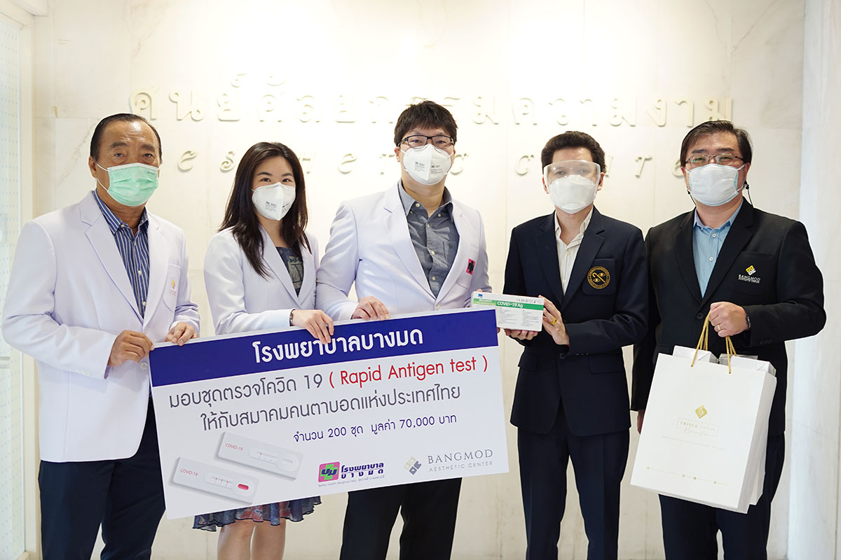 มิติหุ้น – นพ.สุรสิทธิ์ อัศดามงคล ประธานกรรมการบริหาร พร้อมด้วย นพ. เทวเดช อัศดามงคล ประธานเจ้าหน้าที่บริหาร เเละ พญ.ศุภวงษ์ อัศดามงคล โรงพยาบาลบางมด มอบชุดตรวจโควิด-19 ประเภทแรพิดเทสต์ (Rapid Test) ให้กับสมาคมตาบอดแห่งประเทศไทย จำนวน 200 ชุด เพื่อการตรวจคัดกรองผู้เสี่ยงติ