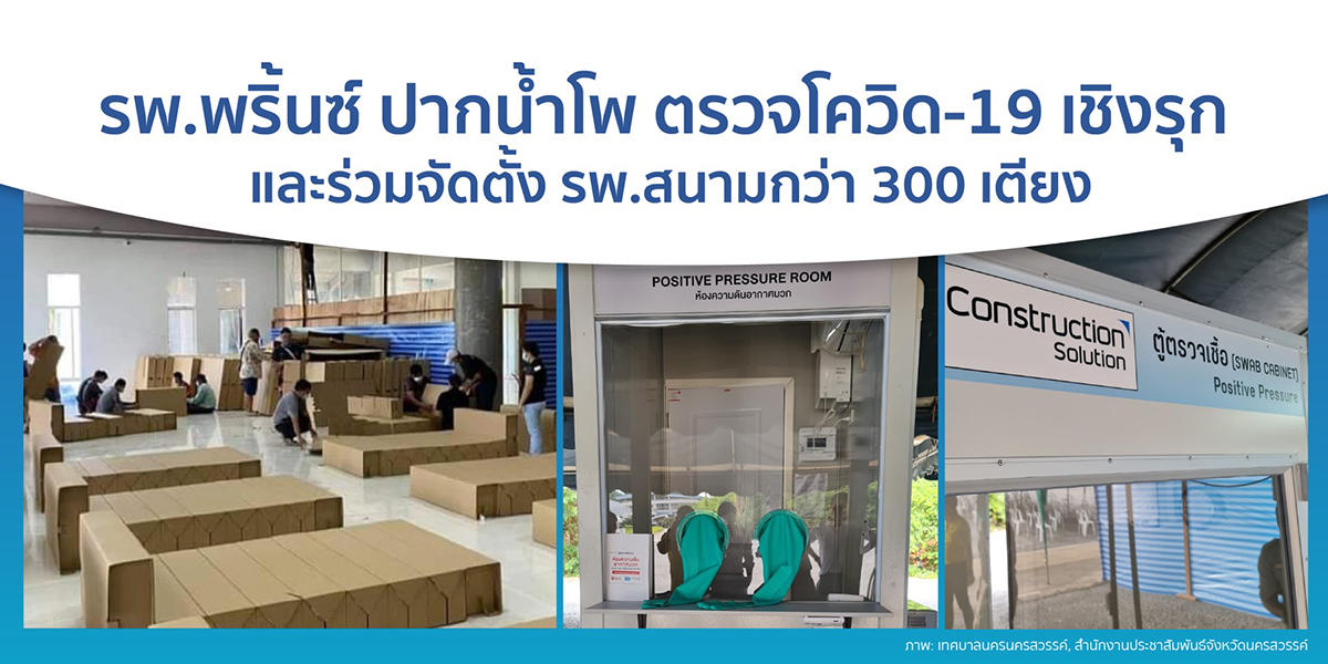มิติหุ้น – นายแพทย์บุญชนะ เพชรพลอยงาม ผู้อำนวยการโรงพยาบาลพริ้นซ์ ปากน้ำโพ ภายใต้บริษัท พริ้นซิเพิล เฮลท์แคร์ ในเครือบริษัทพริ้นซิเพิล แคปิตอล จำกัด (มหาชน) หรือ PRINC เปิดเผยว่า รพ.พริ้นซ์ ปากน้ำโพ ได้ร่วมมือกับจังหวัดนครสวรรค์ และส่วนท้องถิ่น จัดตั้งโรงพยาบาลสนามแห่งใหม่ขนาด 360 เตียง บริเวณห้องประชุมใต้ฐานพระองค์ใหญ่ พุทธอุทยานนครสวรรค์ พร้อมรับผู้ป่วยในวันนี้ (9 ส.ค. 64) โดยได้รับการสนับสนุนเตียงกระดาษ จากบริษัท เจริญภัณฑ์พาณิชย์ (1984) จำกัด และบริษัท ยูไนเต็ด คอนเทนเนอร์ จำกัด และเอกชนหลายแห่งทยอยส่งมอบสิ่งของ เวชภัณฑ์ที่จำเป็นในการดูแลผู้ป่วย และการปฎิบัติหน้าที่อยู่ของบุคลากรด่านหน้าอย่างต่อเนื่อง