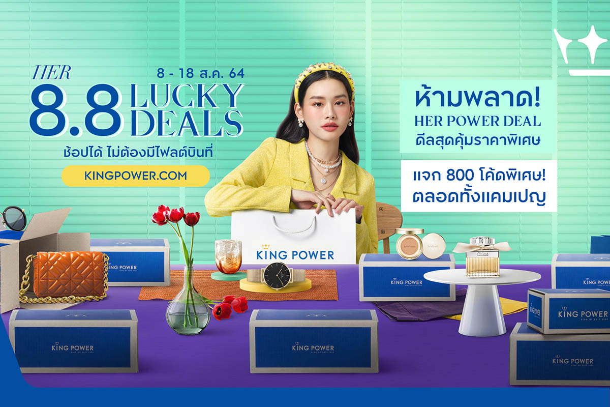 มิติหุ้น – คิง เพาเวอร์ ออนไลน์ จัดดีลสุดเซอร์ไพรส์รับวันแม่ 12 สิงหาคม ในแคมเปญ “HER POWER DEAL” รับสิทธิซื้อสินค้าแบรนด์เนมชั้นนำในราคาดิวตี้ฟรี จำนวนจำกัด ลดสูงสุด 65% แบบไม่มีขั้นต่ำ ไม่ต้องใส่รหัสส่วนลด หรือรับ 800 โค้ดพิเศษกับดีล 8.8 HER LUCKY DEALS ให้คุณช้อปอย่างคุ้มค่าได้ทุกที่ ตลอดเดือนสิงหาคม นี้ ผ่าน www.kingpower.com และ คิง เพาเวอร์ แอปพลิเคชั่น พร้อมบริการ Home Delivery จัดส่งฟรีทั่วประเทศ