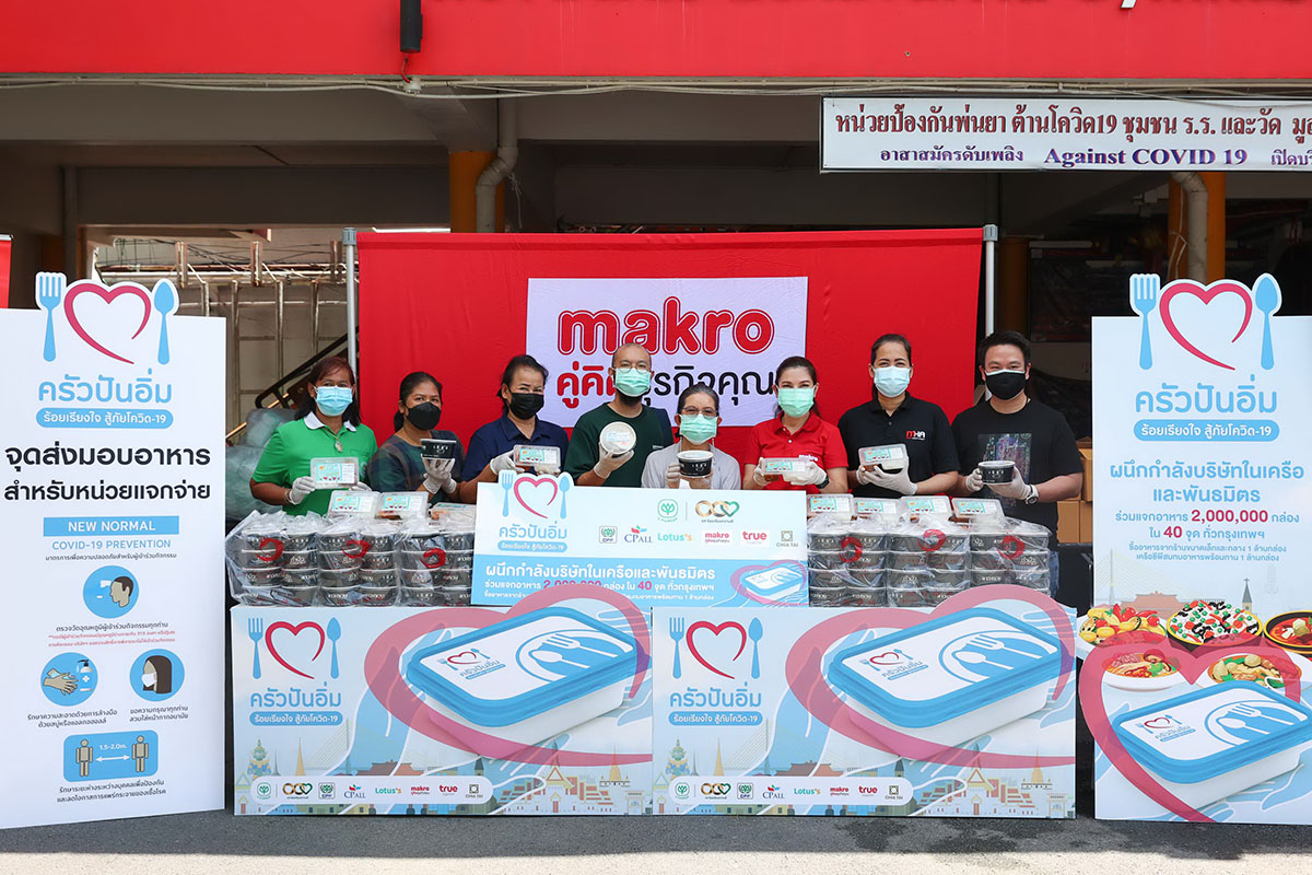 ทั้งนี้ โครงการ “ครัวปันอิ่มร้อยเรียงใจสู้ภัยโควิด-19” เกิดขึ้นโดยการระดมสรรพกำลังของกลุ่มธุรกิจในเครือซีพีและพันธมิตรหลายภาคส่วน ช่วยเหลือและให้กำลังใจประชาชนที่ได้รับความเดือดร้อน 40 ชุมชนในกรุงเทพฯ และปริมณฑล ผ่านการส่งมอบอาหาร 2 ล้านกล่องตลอดระยะเวลา 2 เดือน