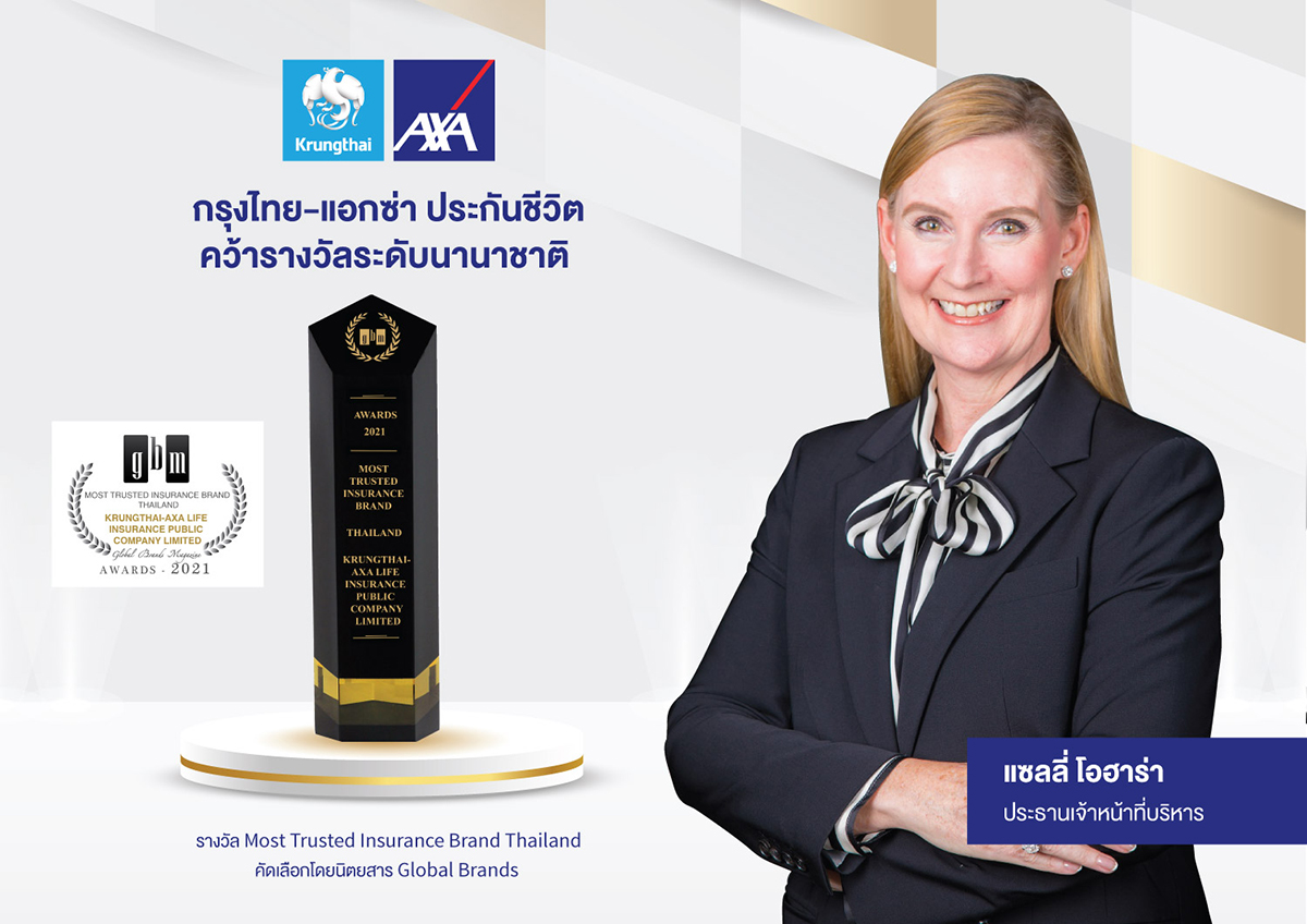 มิติหุ้น – บมจ.กรุงไทย-แอกซ่า ประกันชีวิต โดย คุณแซลลี่ โอฮาร่า ประธานเจ้าหน้าที่บริหาร คว้ารางวัลใหญ่ระดับนานาชาติ จาก Global Brands Magazine Award 2021 ในสาขา “Most Trusted Insurance Brand Thailand” รางวัลนี้ถือเป็นอีกหนึ่งความภาคภูมิใจ และความสำเร็จของการเป็นผู้นำประกันชีวิตด้านประกันสุขภาพที่ได้รับความไว้วางใจสูงที่สุดแห่งปี ด้วยนโยบายในด้านการบริหารงานที่มีประสิทธิภาพ การให้บริการที่ดีเยี่ยมแก่ผู้เอาประกัน ตอกย้ำความมุ่งมั่นของบริษัทฯ ที่พร้อมทั้งเคียงข้างทุกความเชื่อมั่น ดูแลกันตลอดไป