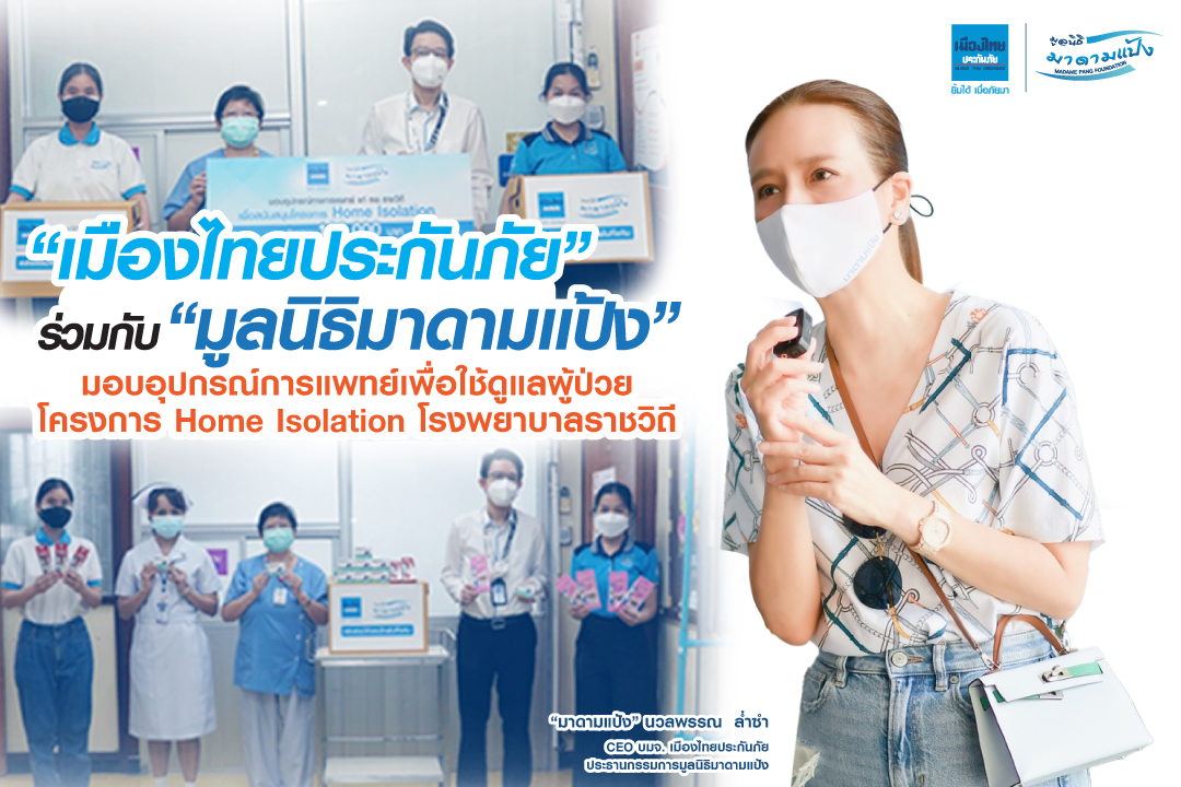 มิติหุ้น – เมืองไทยประกันภัย” ร่วมกับ “มูลนิธิมาดามแป้ง” #ส่งต่อน้ำใจคนไทยไม่ทิ้งกัน มอบอุปกรณ์ทางการแพทย์แก่ โรงพยาบาลราชวิถี เพื่อใช้สำหรับดูแลผู้ป่วยภายใต้โครงการ Home Isolation มูลค่ารวม 100,000 บาท ซึ่งประกอบไปด้วย เครื่องวัดออกซิเจนปลายนิ้ว และปรอทวัดไข้แบบดิจิตอล โดยมี นพ.กนกพจน์ จันทร์ภิวัฒน์ ผู้ช่วยผู้อำนวยการด้านบริการทางการแพทย์ และนายแพทย์ชำนาญการพิเศษด้านเวชกรรม พร้อมด้วยตัวแทนบุคลากรผู้ดูแลโครงการฯ เข้าร่วมรับมอบ เมื่อวันที่ 18 สิงหาคม 2564 ณ ตึกสิรินธร ชั้น 10 โรงพยาบาลราชวิถี