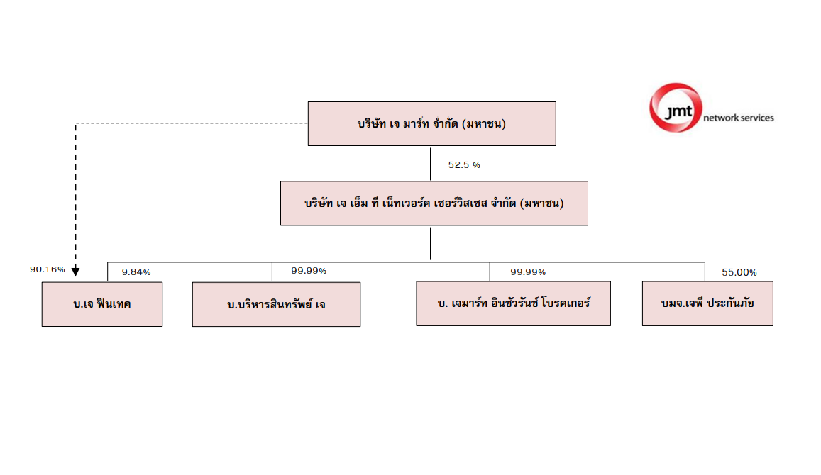 อนึ่ง JMT ปัจจุบันบริษัทฯ บริษัทย่อย และบริษัทที่ลงทุน มีการดำเนินการใน 4 ธุรกิจหลัก ประกอบด้วยธุรกิจให้บริการติดตามเร่งรัดหนี้ ธุรกิจบริหารหนี้ด้อยคุณภาพ ธุรกิจประกันภัย และธุรกิจนายหน้าประกันภัย ขณะที่บริษัทฯ ได้หยุดประกอบธุรกิจให้บริการสินเชื่อเช่าซื้อรถยนต์แล้ว ตั้งแต่ปี 56 โดย ณ สิ้นไตรมาส 2/2564 JMT มีพอร์ตบริหารหนี้ด้อยคุนภาพรวมอยู่ที่ 217,557 ลบ.