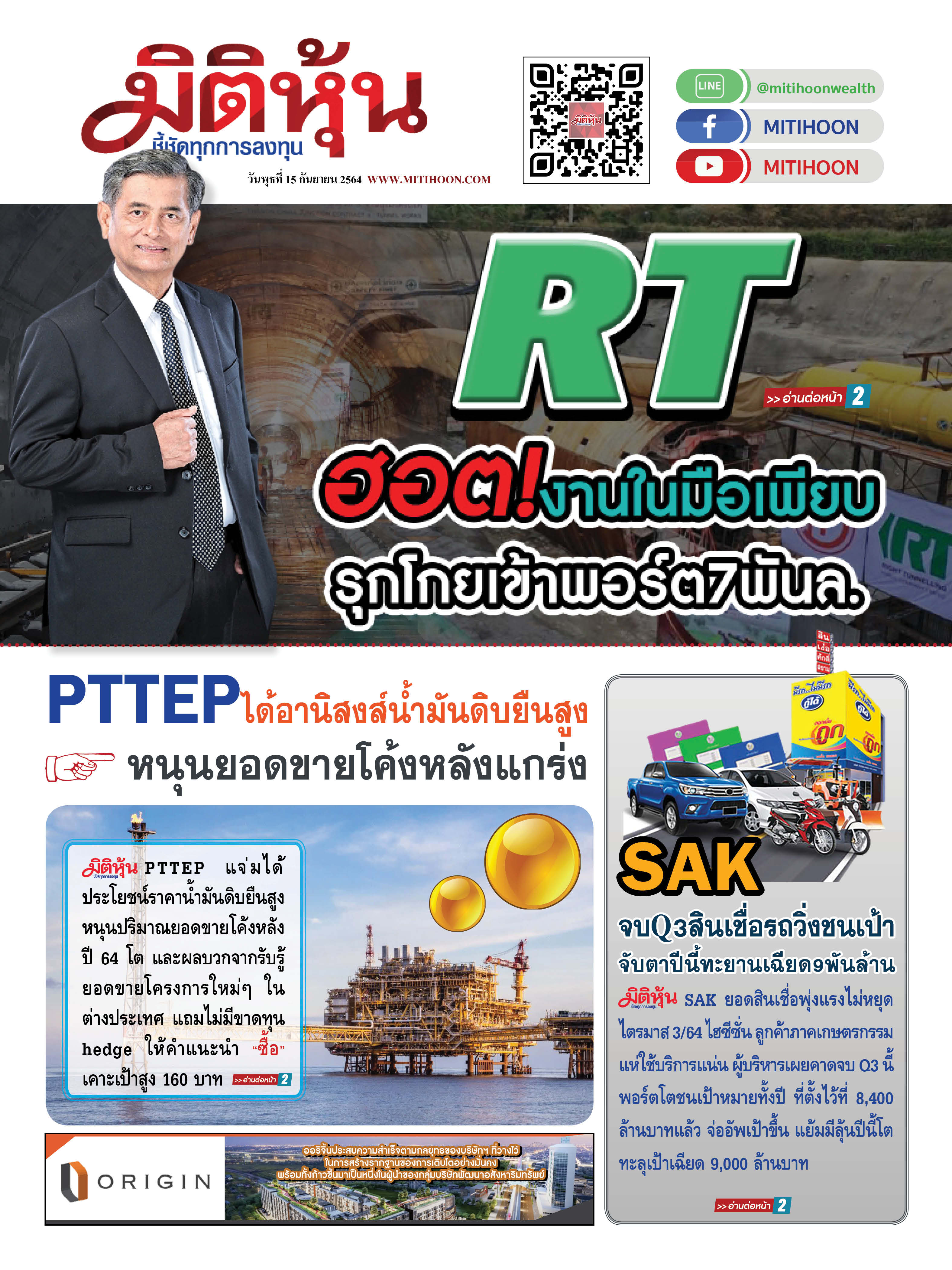 นสพ. “มิติหุ้น” ชี้ชัดทุกการลงทุน ฉบับวันที่ 15 ก.ย.64