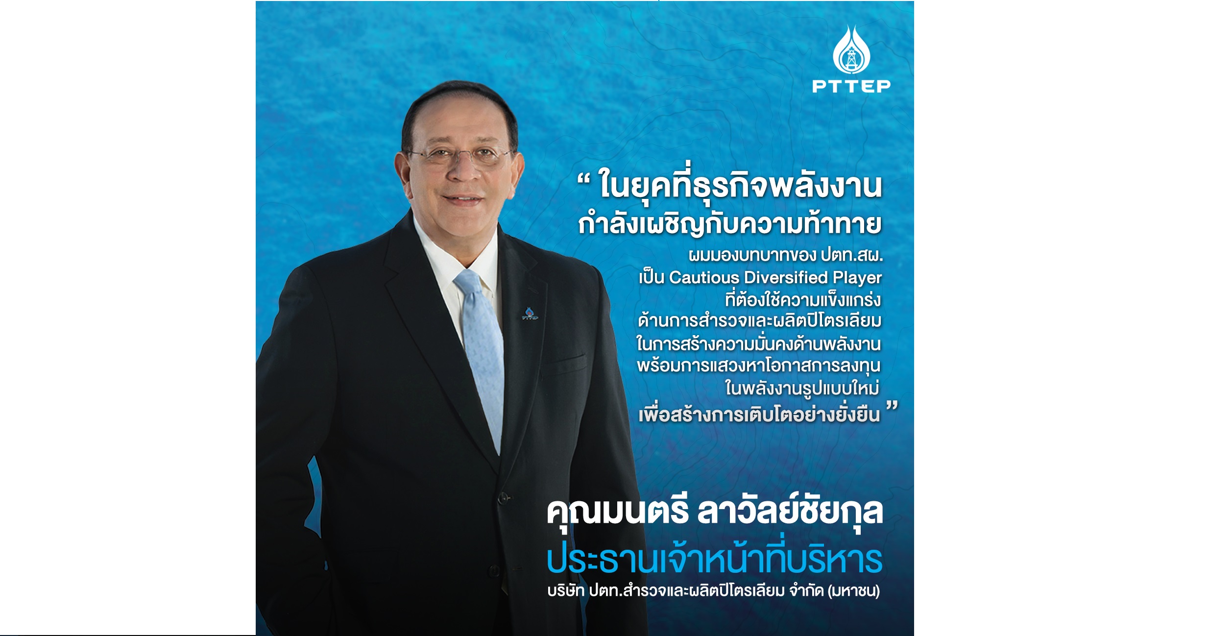 “เพื่อปรับตัวให้สอดคล้องกับสถานการณ์ของโลกซึ่งจะเปลี่ยนแปลงไปในอนาคต ผมมองว่า บทบาทของ ปตท.สผ. จะต้องเป็น Cautious Diversified Player ที่ยังคงสร้างและรักษาความแข็งแกร่งของธุรกิจการสำรวจและผลิตปิโตรเลียมไว้ตามเป้าหมายเดิม เพื่อความมั่นคงด้านพลังงาน ขณะเดียวกัน เราพร้อมแสวงหาโอกาสการลงทุนในธุรกิจพลังงานรูปแบบใหม่ที่เป็นมิตรต่อสิ่งแวดล้อมด้วยเทคโนโลยีและกระบวนการใหม่ ๆ ซึ่งในการดำเนินการทั้งสองส่วนจะควบคู่ไปกับการคำนึงถึงสิ่งแวดล้อม สังคม และ ธรรมาภิบาล (ESG) เพื่อให้ ปตท.สผ.เติบโตอย่างมั่นคงและยั่งยืน” นายมนตรี กล่าว