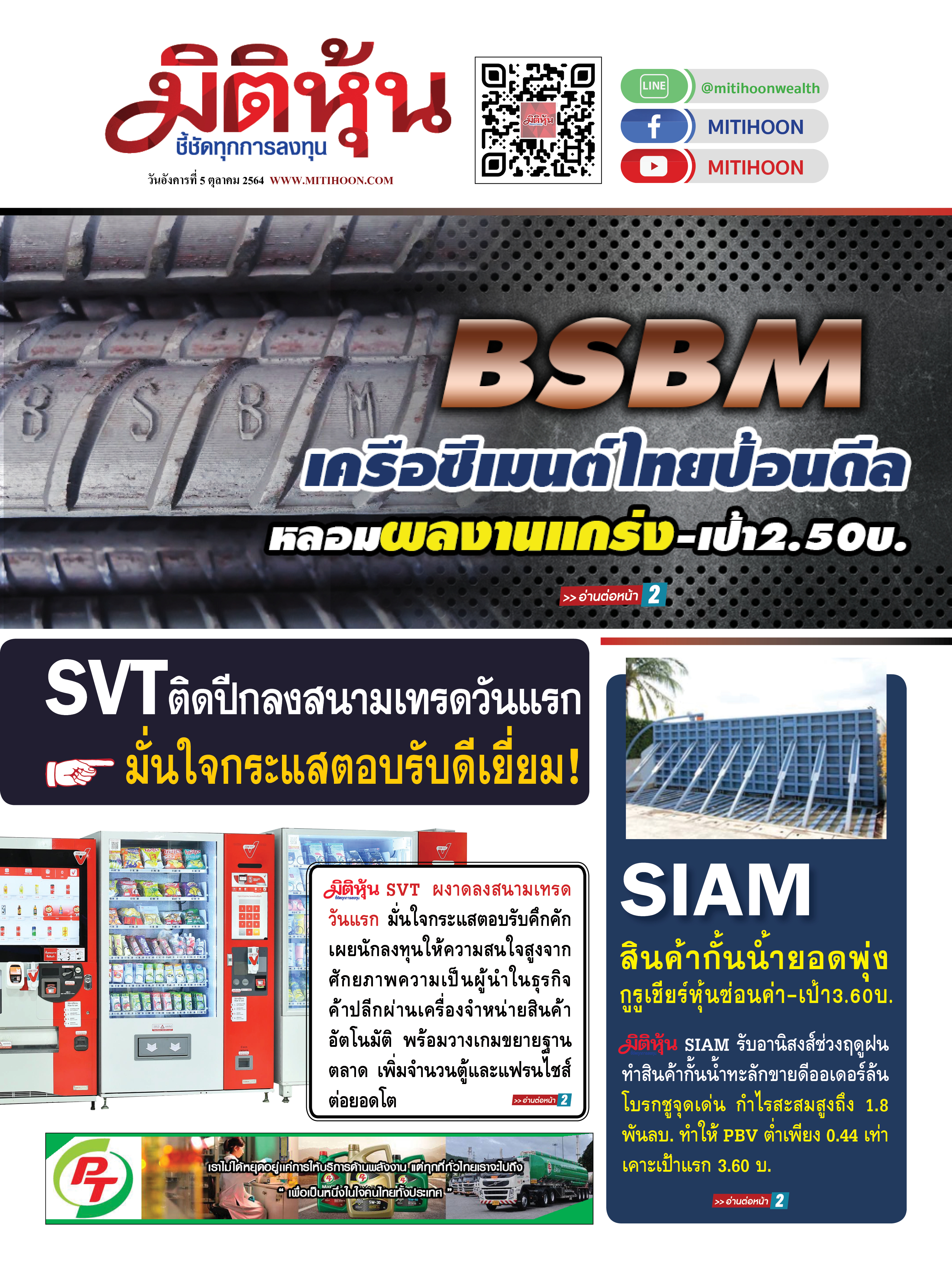 นสพ. “มิติหุ้น” ชี้ชัดทุกการลงทุน ฉบับวันที่ 5 ต.ค.64