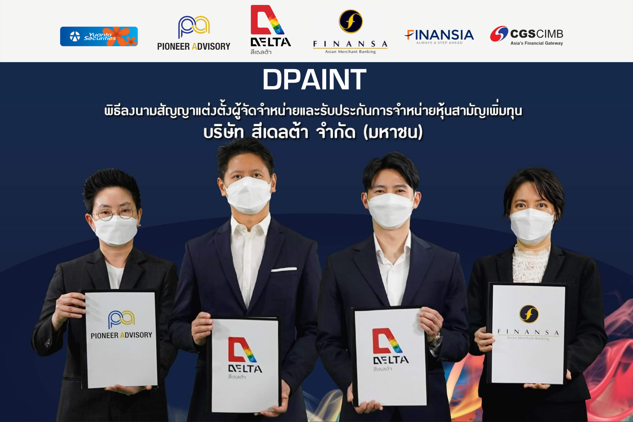 โดยล่าสุด DPAINT ได้ลงนามแต่งตั้ง บริษัทหลักทรัพย์ ฟินันซ่า จำกัด เป็นผู้จัดการการจัดจำหน่ายและรับประกันการจำหน่าย พร้อมด้วยผู้ร่วมจัดจำหน่ายและรับประกันการจำหน่าย ได้แก่ บริษัทหลักทรัพย์ ฟินันเซีย ไซรัส จำกัด (มหาชน) บริษัทหลักทรัพย์หยวนต้า (ประเทศไทย) จำกัด และ บริษัทหลักทรัพย์ ซีจีเอส-ซีไอเอ็มบี (ประเทศไทย) จำกัด
