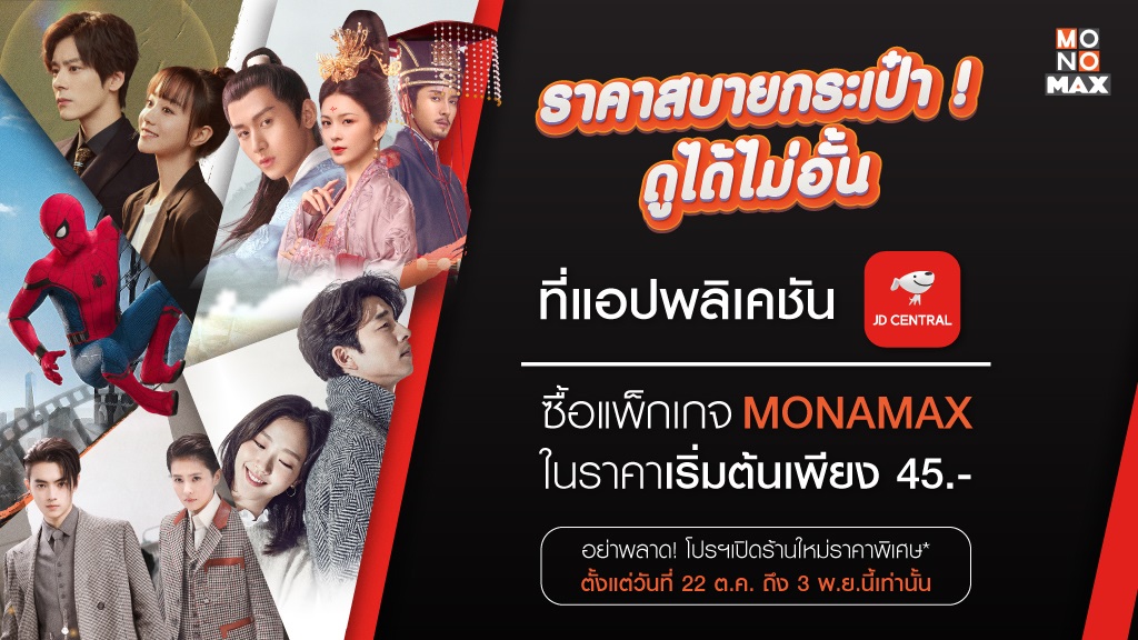 “MONOMAX” (โมโนแมกซ์) ผู้ให้บริการดูหนังออนไลน์ ในเครือ Mono Next (โมโน เน็กซ์) ร่วมกับ “เซ็นทรัล กรุ๊ป” แอปพลิเคชั่น “JD CENTRAL” (เจดี เซ็นทรัล) มอบสิทธิพิเศษซื้อแพ็กเกจ MONOMAX ในราคาสบายกระเป๋า! ดูได้ไม่อั้น เริ่มต้นเพียง 45 บาทเท่านั้น (เริ่มจากแพ็กเกจ 5 วัน, 7 วัน, 15 วัน, 45 วัน และ 90 วัน) สนใจซื้อ E-Voucher MONOMAX ใน JD CENTRAL ได้แล้ววันนี้ และพบโปรโมชั่นเปิดร้านใหม่ราคาพิเศษ ตั้งแต่วันนี้ ถึง 3 พฤศจิกายน 2564 นี้เท่านั้น สอบถามข้อมูลเพิ่มเติมได้ที่ เฟซบุ๊กแฟนเพจ MONOMAX โทร. 02-100-7007