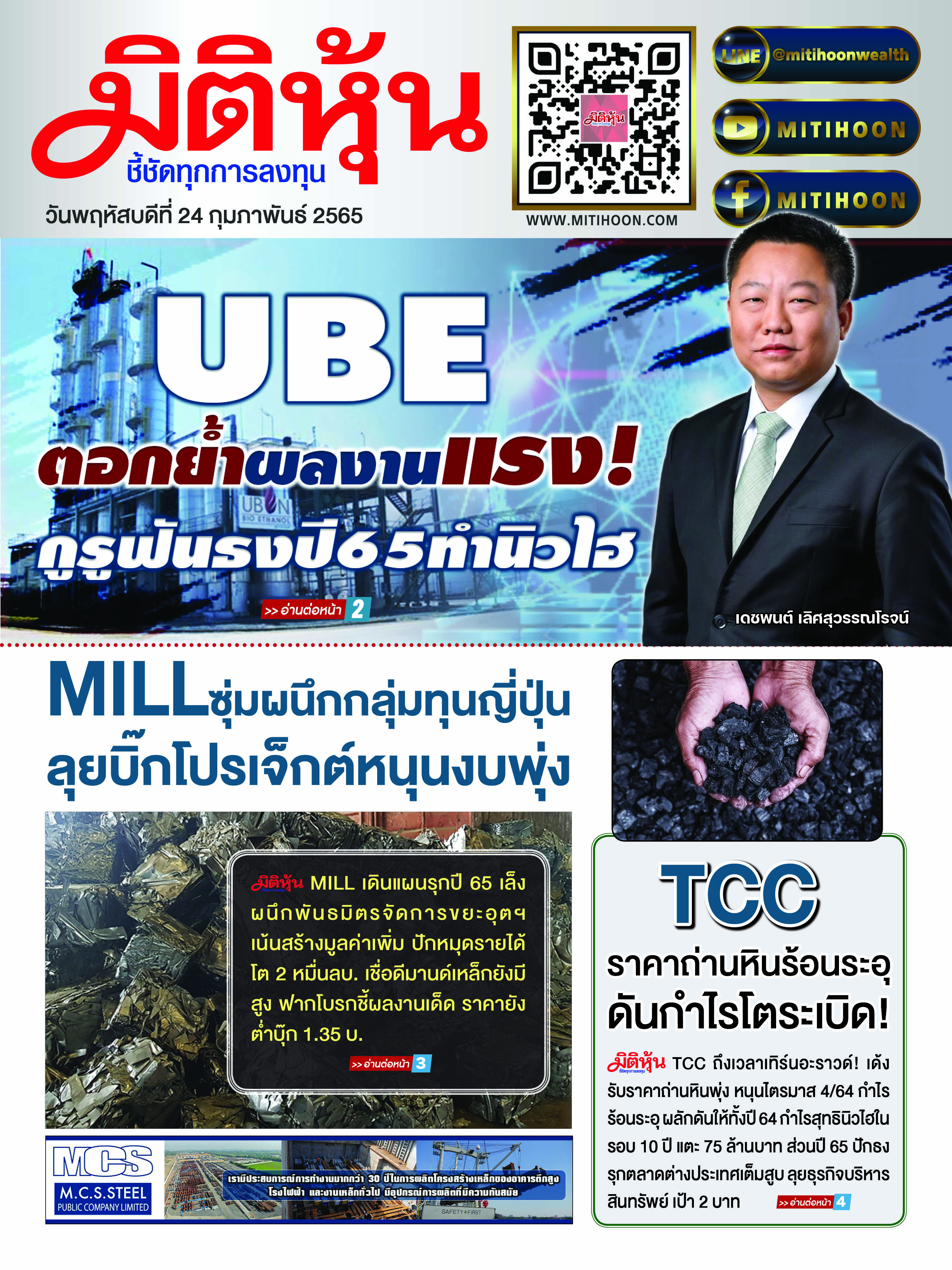 นสพ. “มิติหุ้น” ชี้ชัดทุกการลงทุน ฉบับวันที่ 24 ก.พ. 2565