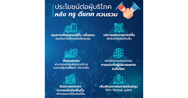 - หลังการควบรวม ผู้เล่นทุกรายในอุตสาหกรรมโทรคมนาคมไทย พร้อมปรับตัวเข้าสู่การเป็นบริษัทเทคโนโลยี และเพิ่มขีดความสามารถที่จะแข่งกับผู้ประกอบการระดับโลก และสนับสนุนการลงทุนของ Tech Startup รุ่นใหม่ บริษัทจะมีความสามารถในการลงทุนเพิ่ม รองรับเทคโนโลยีใหม่ ทำให้ลูกค้าได้รับบริการดิจิทัลมากขึ้น เช่น บริการแพทย์ทางไกล การประชุมทางไกล การเข้าถึงคอนเทนต์ เพลง หนัง ระดับโลก ในราคาลดลง