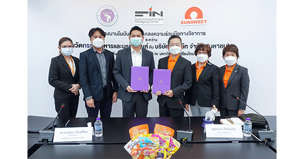 มิติหุ้น – บริษัท ซันสวีท จำกัด (มหาชน) หรือ SUN พร้อมขับเคลื่อนองค์กรสู่อนาคต จับมือ ศูนย์นวัตกรรมอาหารและบรรจุภัณฑ์ มหาวิทยาลัยเชียงใหม่ หรือ FIN ร่วมมือทางวิชาการ มุ่งพัฒนางานวิจัยผลิตภัณฑ์ เทคโนโลยีบรรจุภัณฑ์ และการปรับปรุงกระบวนการผลิต เสริมสร้างขีดความสามารถสู่ใช้ประโยชน์เชิงพาณิชย์ ณ ห้องประชุม ชั้น 2 อาคารสำนักงานมหาวิทยาลัยเชียงใหม่ เมื่อวันที่ 11 เมษายน 2565