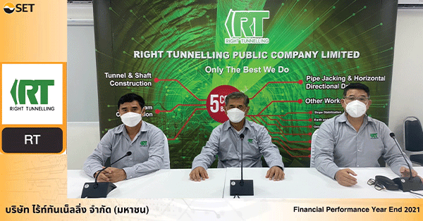 มิติหุ้น – นายชวลิต ถนอมถิ่น (กลาง) ประธานเจ้าหน้าที่บริหาร นายสุรศักดิ์ สีเขียว (ซ้าย) กรรมการผู้จัดการ และ นายไชยา วงศ์ลาภพานิช (ขวา) รองกรรมการผู้จัดการสายงานบัญชีและการเงิน บมจ.ไร้ท์ทันเน็ลลิ่ง (RT) ให้ข้อมูลสรุปผลประกอบการปี 2564 รายได้รวม 2,492 ล้านบาท กำไรสุทธิ 42 ล้านบาท เตรียมปันผล 0.014 บาท/หุ้น คิดเป็น 41.71% ของกำไรสุทธิฯ กำหนดจ่าย 24 พ.ค. 65 อีกทั้งมีมติอนุมัติออก RT-W1 ในอัตรา 5:1 พร้อมทิศทางธุรกิจ Q1/65 รับงานใหม่ 9 โครงการ ในงานบริษัทจดทะเบียนพบผู้ลงทุน (Opportunity Day) จัดโดยตลาดหลักทรัพย์แห่งประเทศไทย สามารถรับชมบันทึกเทปได้ที่ www.set.or.th/streaming/vdos-oppday