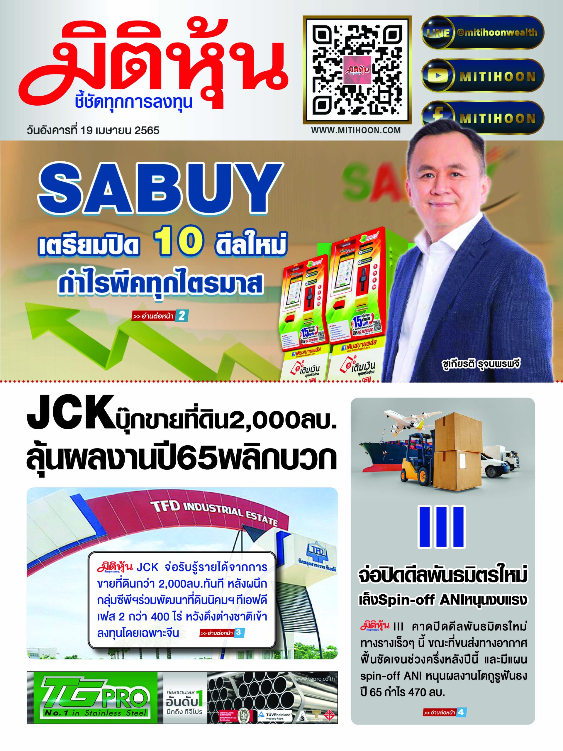 นสพ. “มิติหุ้น” ชี้ชัดทุกการลงทุน ฉบับวันที่ 19 เม.ย.65
