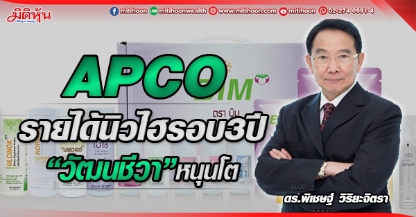 มิติหุ้น – APCO ชูนวัตกรรม “วัฒนชีวา” บำบัดผู้ป่วยโรคร้าย หนุนผลประกอบการปีนี้กลับมาผงาด คาดรายได้ปีนี้ แตะ 400 ลบ. ทำสถิติสูงสุดในรอบ 3 ปี