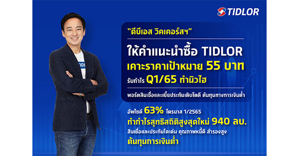หลังจาก บริษัท เงินติดล้อ จำกัด (มหาชน) หรือ TIDLOR แจ้งผลประกอบการไตรมาส 1/2565 มีกำไรสุทธิทำสถิติสูงสุดใหม่และมีอัตราเติบโตอย่างโดดเด่น ล่าสุด บริษัท ดีบีเอส วิคเคอร์ส (ประเทศไทย) จำกัด