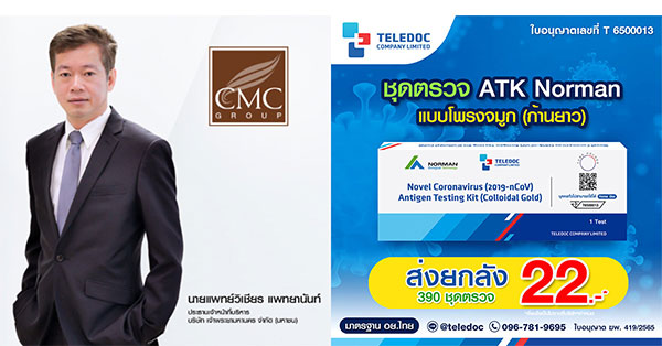 มิติหุ้น – นายแพทย์วิเชียร แพทยานันท์ ประธานเจ้าหน้าที่บริหาร บริษัท เจ้าพระยามหานคร จำกัด (มหาชน) CMC เปิดเผยว่า “จากการนำเข้าชุดตรวจ ATK ล็อตแรกในราคาเพื่อคนไทยได้รับกระแสดีเกินคาด ทำให้ “เทเลด็อค (Teledoc)” กลุ่มธุรกิจเฮลท์แคร์ในเครือ CMC ได้นำเข้า ATK ยี่ห้อ Norman เฟสใหม่ หนุนรับการเปิดประเทศปลดล็อกดาวน์ ถึงแม้สถานการณ์โควิด-19 จะคลี่คลายลงก็ตาม แต่อย่างไรชุดตรวจ ATK ยังเป็นสิ่งจำเป็นเพื่อตรวจหาเชื้อโควิด-19 แบบเร่งด่วน หากได้รับความเสี่ยงจากการเดินทางไปยังสถานที่เสี่ยงต่อการติดเชื้อและแพร่ระบาด เช่น สถานที่มีคนแออัดเบียดเสียด สวนสาธารณะ ขนส่งสาธารณะต่าง ๆ