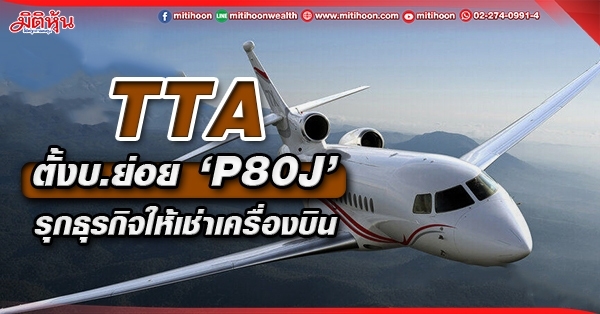 มิติหุ้น-นายเฉลิมชัย มหากิจศิริ กรรมการ กรรมการผู้จัดการใหญ่ และประธานเจ้าหน้าที่บริหาร บมจ.โทรีเซนไทย เอเยนต์ซีส์ หรือ TTA เปิดเผยว่า บริษัทได้จัดตั้งบริษัทย่อย คือ “บ.พี 80 เจ็ท หรือ P80J” ทำธุรกิจให้เช่าเครื่องบินเหมาลำ มีทุนจดทะเบียน 250 ล้านบาท แบ่งเป็นหุ้นสามัญจำนวน 2,500,000 หุ้น มูลค่าที่ตราไว้หุ้นละ 100 บาท โดย TTA ถือหุ้นสัดส่วน 100% และลงทุนจำนวน 250 ล้านบาท
