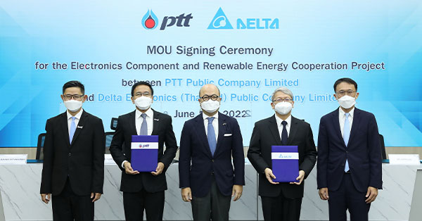 มิติหุ้น – หม่อมหลวงชโยทิต กฤดากร ผู้แทนการค้าไทย และที่ปรึกษานายกรัฐมนตรี (กลาง) คุณนพดล ปิ่นสุภา ประธานเจ้าหน้าที่ปฏิบัติการกลุ่มธุรกิจใหม่และโครงสร้างพื้นฐาน บริษัท ปตท. จำกัด (มหาชน) (ที่ 2 จากซ้าย) ดร.บุรณิน รัตนสมบัติ รองกรรมการผู้จัดการใหญ่นวัตกรรมและธุรกิจใหม่ บริษัท ปตท. จำกัด (มหาชน) (ซ้าย) Mr. Jackie Chang, President of Delta Electronics (Thailand) Public Company Limited (ที่ 2 จากขวา) และ Mr. Curtis Ku, Thailand Country Director of Delta Electronics (Thailand) Public Company Limited (ขวา) ร่วมพิธีลงนามบันทึกข้อตกลงความร่วมมือการศึกษาและแสวงหาโอกาสทางธุรกิจด้านอุปกรณ์อิเล็กทรอนิกส์และพลังงานทดแทน ระหว่าง บริษัท ปตท. จำกัด (มหาชน) และ บริษัท เดลต้า อีเลคโทรนิคส์ (ประเทศไทย) จำกัด (มหาชน) เพื่อผสานความร่วมมือในการศึกษา และพัฒนาธุรกิจในอนาคต ที่มุ่งเน้นด้านอุปกรณ์อิเล็กทรอนิกส์ที่เกี่ยวข้องกับอุตสาหกรรมยานยนต์ไฟฟ้า ระบบนิเวศ อุปกรณ์ และแบตเตอร์รี่สำหรับการชาร์จรถยนต์ไฟฟ้า ที่จะช่วยยกระดับนวัตกรรมอิเล็กทรอนิกส์ให้สามารถเข้าถึง และตอบสนองความต้องการของตลาดและผู้บริโภคได้มากขึ้น ตลอดจนเพิ่มศักยภาพในการใช้พลังงานทดแทนในภาคครัวเรือนและภาคอุตสาหกรรม ซึ่งจะทำให้เกิดโอกาสใหม่ ๆ สำหรับการเติบโตของอุตสาหกรรมอิเล็กทรอนิกส์และเศรษฐกิจดิจิทัล รวมทั้งเร่งการเติบโตของอุตสาหกรรมยานยนต์ไฟฟ้าของไทยให้รวดเร็วยิ่งขึ้น เป็นพลังขับเคลื่อนการพัฒนานวัตกรรมพลังงานยั่งยืนที่พร้อมสำหรับการพัฒนาเศรษฐกิจของประเทศไทย ควบคู่กับการส่งเสริมคุณภาพชีวิตที่ดีให้แก่ชุมชนและสังคมในอนาคต