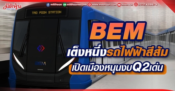 มิติหุ้น – BEM เต็งหนึ่งรถไฟฟ้าสายสีส้ม คาดกำไรปีนี้โต 129% แตะ2.3 พันลบ.งบQ2/65 เด่น หลังเปิดเมืองหนุนผู้ใช้ทางด่วน-รถไฟฟ้าฟื้น