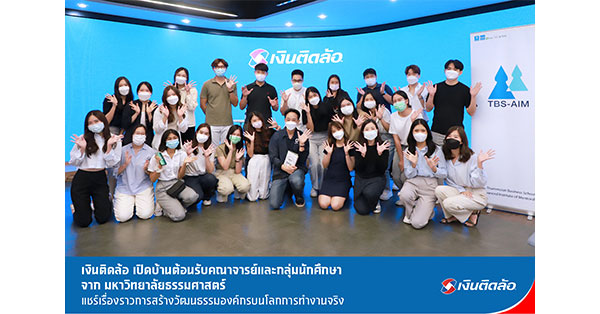 มิติหุ้น – บริษัท เงินติดล้อ จำกัด (มหาชน) หรือ TIDLOR โดย นายปิยะศักดิ์ อุกฤษฎ์นุกูล กรรมการผู้จัดการใหญ่ นำทีมต้อนรับคณาจารย์และกลุ่มนักศึกษา จากโครงการ Thammasat Business School – Advanced Institute of Mentorship (TBS-AIM) คณะพาณิชยศาสตร์และการบัญชี มหาวิทยาลัยธรรมศาสตร์ จำนวน 30 ท่าน เข้าร่วมกิจกรรม TIDLOR Culture WOW เพื่อบอกเล่าเรื่องราวแนวทางการขับเคลื่อนธุรกิจด้วยวัฒนธรรมองค์กรที่แข็งแกร่ง นอกจากนี้ยังได้แบ่งปันแนวคิด พร้อมกับวิธีการทำงานโดยการใช้ประโยชน์จากข้อมูล (Data Analytics) ของเงินติดล้อ เพื่อเตรียมพร้อมเข้าสู่ยุคดิจิทัล ทรานส์ฟอร์เมชัน และขับเคลื่อนองค์กรให้ก้าวไปข้างหน้าได้อย่างยั่งยืน