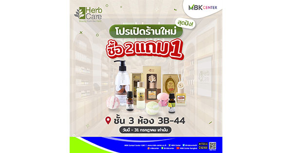 มิติหุ้น – HERB CARE ฉลองเปิดสาขาใหม่ที่ศูนย์การค้าเอ็ม บี เค เซ็นเตอร์ จัดเต็มโปรโมชัน ซื้อ 2 แถม 1 ตลอดเดือนกรกฏาคม หากชื่นชอบผลิตภัณฑ์เพื่อสุขภาพ สปาและความงามจากวัตถุดิบธรรมชาติ พืชสมุนไพรไทย ห้ามพลาดแวะมาช้อปฟิน ๆ กันได้ที่ ชั้น 3 โซน B ร้านเปิดอย่างเป็นทางการวันศุกร์ที่ 1 กรกฎาคมนี้
