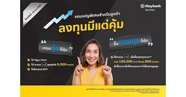 มิติหุ้น – บมจ.หลักทรัพย์ เมย์แบงก์ (ประเทศไทย) จัดแคมเปญสุดพิเศษรับหน้าฝนเย็นฉ่ำ กับแคมเปญ “ลงทุนมีแต่คุ้ม” จะสายเทรดหุ้น หรือสายซื้อกองทุนก็คุ้ม ตั้งแต่วันนี้ – 30 ก.ย. 2565 เมื่อลูกค้าเทรดหุ้นกับเมย์แบงก์ รับเลยคะแนน Tiger Point และพิเศษเฉพาะช่วงแคมเปญนี้ จะได้รับคะแนน The1 สูงสุดถึง 9,000 คะแนน แถมยังมีโอกาสได้รับข้อเสนอ IPO ก่อนใคร โดยเป็นไปตามหลักเกณฑ์และเงื่อนไขที่บริษัทกำหนด ส่วนลูกค้าที่ซื้อกองทุนกับเมย์แบงก์ ก็จะได้รับคะแนน The1 แบบสุดคุ้ม เพียงลงทุนตั้งแต่ 100,000 บาทขึ้นไป รับเลย 800 คะแนน ยิ่งซื้อมาก ยิ่งได้คะแนนมาก อย่ารอช้า ลงทุนช่วงนี้ มีแต่คุ้ม สอบถามรายละเอียดเพิ่มเติมได้ที่ ศูนย์ลูกค้าสัมพันธ์ 02-658-5050