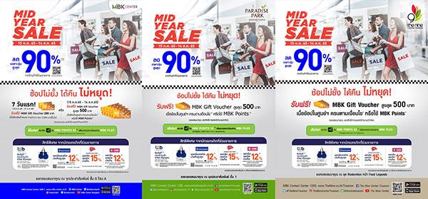 มิติหุ้น – ถึงเวลาสุดคุ้มของเหล่านักชิม นักช้อป กับแคมเปญโปรโมชัน “MID YEAR SALE” จาก 3 ศูนย์การค้าในเครือเอ็ม บี เค ได้แก่ เอ็ม บี เค เซ็นเตอร์ พาราไดซ์ พาร์ค และ เดอะไนน์ เซ็นเตอร์ ติวานนท์ ชวนมาช้อปแลกรับ MBK Gift Voucher และสิทธิพิเศษแบบ 3 ต่อ ตั้งแต่วันนี้ – 14 สิงหาคม 2565 โดยมีรายละเอียดดังนี้