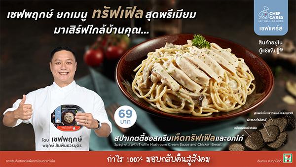 อาหารแช่แข็ง “สปาเกตตี้ซอสครีมเห็ดทรัฟเฟิลและอกไก่” แบรนด์เชฟแคร์ส จำหน่ายในราคาเพียง 69 บาท ที่ 7–Eleven ทั่วไทย โดยกำไรทั้ง 100% จะมอบคืนสู่สังคมผ่านมูลนิธิเชฟแคร์สเช่นเคย