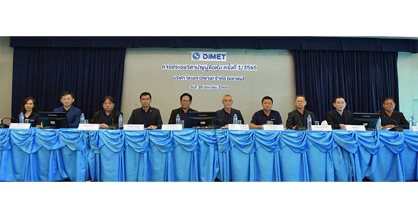 มิติหุ้น – บมจ.ไดเมท (สยาม) จัดประชุมวิสามัญผู้ถือหุ้น ครั้งที่ 1/2565 : ดร.วรดิศ ธนภัทร ประธานกรรมการบริหาร (ที่ 5 จากซ้าย), พล.ต.อ.อดิศร์ งามจิตสุขศรี ประธานกรรมการและกรรมการอิสระ (ที่ 6 จากซ้าย) , นายพิชัย ชัยณรงค์โลกา ประธานเจ้าหน้าที่บริหารฝ่ายการเงินและการบัญชี (ที่ 3 จากซ้าย) ภายหลังการประชุมวิสามัญผู้ถือหุ้น ครั้งที่1/2565 ที่ประชุมฯ มีมติอนุมัติให้เข้าลงทุนในบริษัท เอสจีเอ็มพี จำกัด และเพิ่มทุนจดทะเบียนจำนวน 211,500,000 บาท โดยออกเป็นหุ้นสามัญเพิ่มทุนจำนวน 423,000,000 หุ้น และจัดสรรให้บุคคลในวงจำกัด (Private Placement) เพื่อใช้ชำระแทนเงินสดส่วนหนึ่ง และจ่ายเป็นเงินสดจำนวน 122,130,000 บาท ภาพจากการเข้าลงทุนในบริษัท เอสจีเอ็มพี จำกัด เมื่อเร็วๆ นี้ ณ ห้องบอลรูม สนามกอล์ฟ บางปู กอล์ฟ แอนด์ สปอร์ต