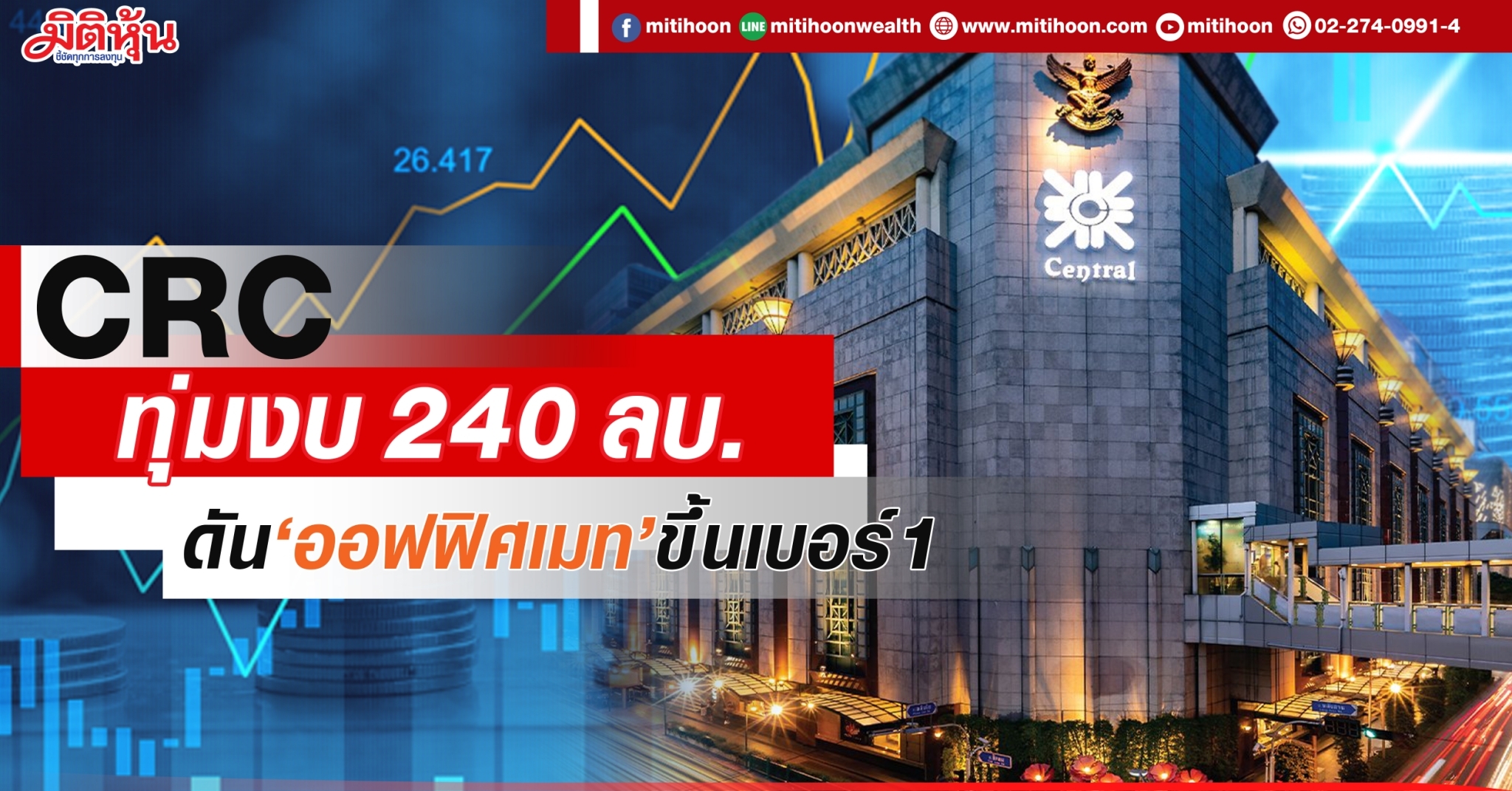 มิติหุ้น-บริษัท เซ็นทรัล รีเทล คอร์ปอเรชั่น จำกัด (มหาชน) หรือ CRC เดินเกมรุกขับเคลื่อนยุทธศาสตร์ CRC Retailligence เร่งเครื่องขยายพอร์ตธุรกิจกลุ่มเฮลธ์แอนด์เวลเนสอย่างเต็มกำลัง ล่าสุดทุ่มงบกว่า 240 ล้านบาท ดัน “ออฟฟิศเมท” ผู้นำอันดับ 1 ด้านอุปกรณ์สำนักงานไอที เฟอร์นิเจอร์ และสินค้าเพื่อธุรกิจ B2B เข้าร่วมทุนกับ บริษัท เอ็มพี ซินเนอร์จี จำกัด ผู้นำด้านเฟอร์นิเจอร์เพื่อสุขภาพ ภายใต้แบรนด์ยอดนิยม “เออร์โกเทรนด์” (Ergotrend) ในสัดส่วน 60% เพื่อเสริมแกร่งสินค้าในกลุ่มเฮลธ์แอนด์เวลเนสที่มีแนวโน้มขยายตัวสูงขึ้น พร้อมเดินหน้าลุยตลาดอย่างต่อเนื่อง เพื่อครองส่วนแบ่งในตลาดเฟอร์นิเจอร์ที่มีมูลค่าสูงถึง 4.3 หมื่นล้านบาท และมุ่งสู่เบอร์ 1 ตลาดเฟอร์นิเจอร์เพื่อสุขภาพในไทยอย่างเต็มรูปแบบ