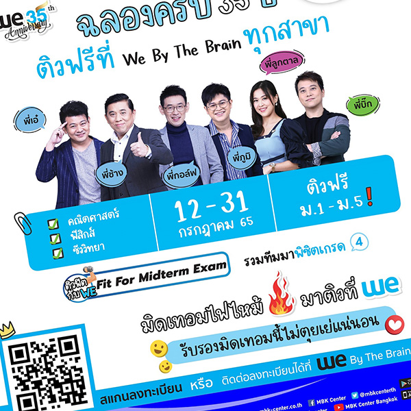 มิติหุ้น – ศูนย์การค้าเอ็ม บี เค เซ็นเตอร์ ชวนน้อง ๆ มาติวเสริมเพิ่มความรู้กับสถาบันกวดวิชา We By The Brain กับกิจกรรม ติวฟรี!! “WE Fit For Midterm Exam” ติวฟิตแบบ Non-Limit ทุกประเด็น เน้นทุกเนื้อหา พร้อมเทคนิคพิเศษ สำหรับพิชิตข้อสอบมิดเทอม วิชาคณิตศาสตร์ ฟิสิกส์ ชีววิทยา จากพี่ ๆ WE Tutors เพื่อน้อง ๆ ที่เตรียมตัวสอบ ตั้งแต่ระดับชั้นมัธยมศึกษาปีที่1 – มัธยมศึกษาปีที่ 5 โดยสามารถลงทะเบียน เพื่อเข้าร่วมกิจกรรม ตั้งแต่วันนี้ – วันอาทิตย์ที่ 31 กรกฎาคม 2565 ที่ We By The Brain สาขา ศูนย์การค้าเอ็ม บี เคเซ็นเตอร์ ที่ชั้น 6 โซน Learning Hub